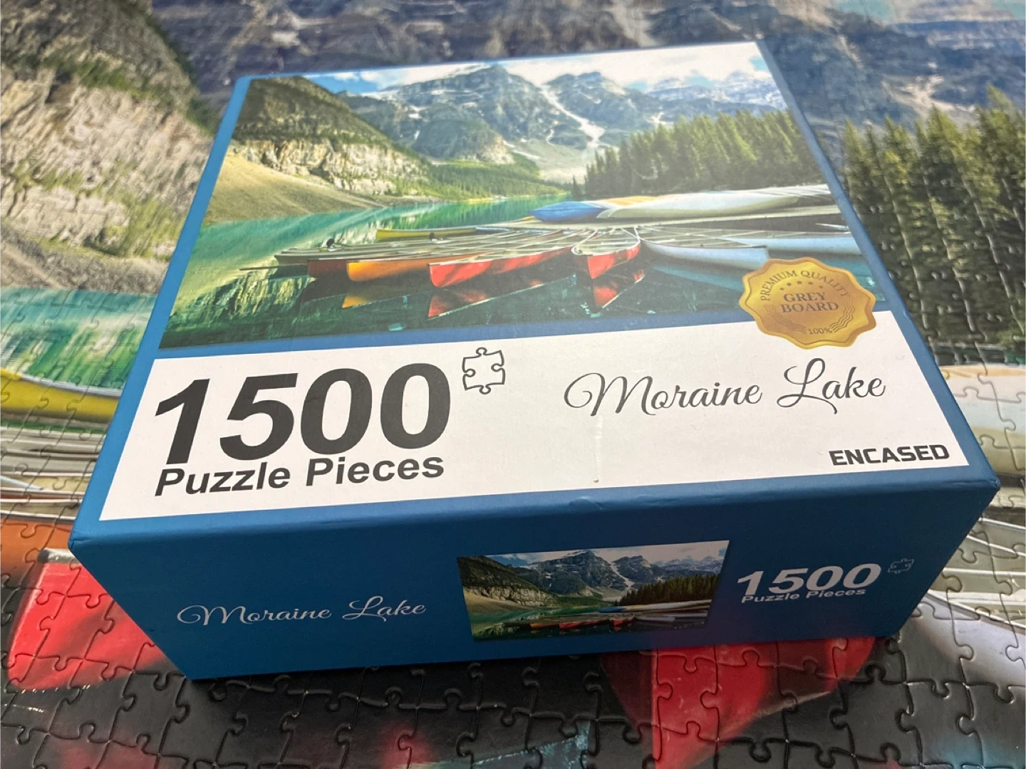 This jigsaw puzzle features a scenic view of Moraine Lake with canoes. It contains 1500 pieces and is designed for hours of engaging fun. The puzzle is perfect for anyone who enjoys beautiful landscapes and challenging puzzles.