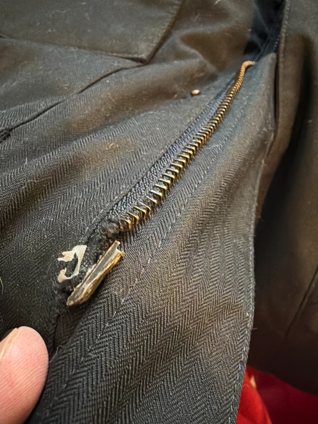 Zipper is damaged and will need replacement-