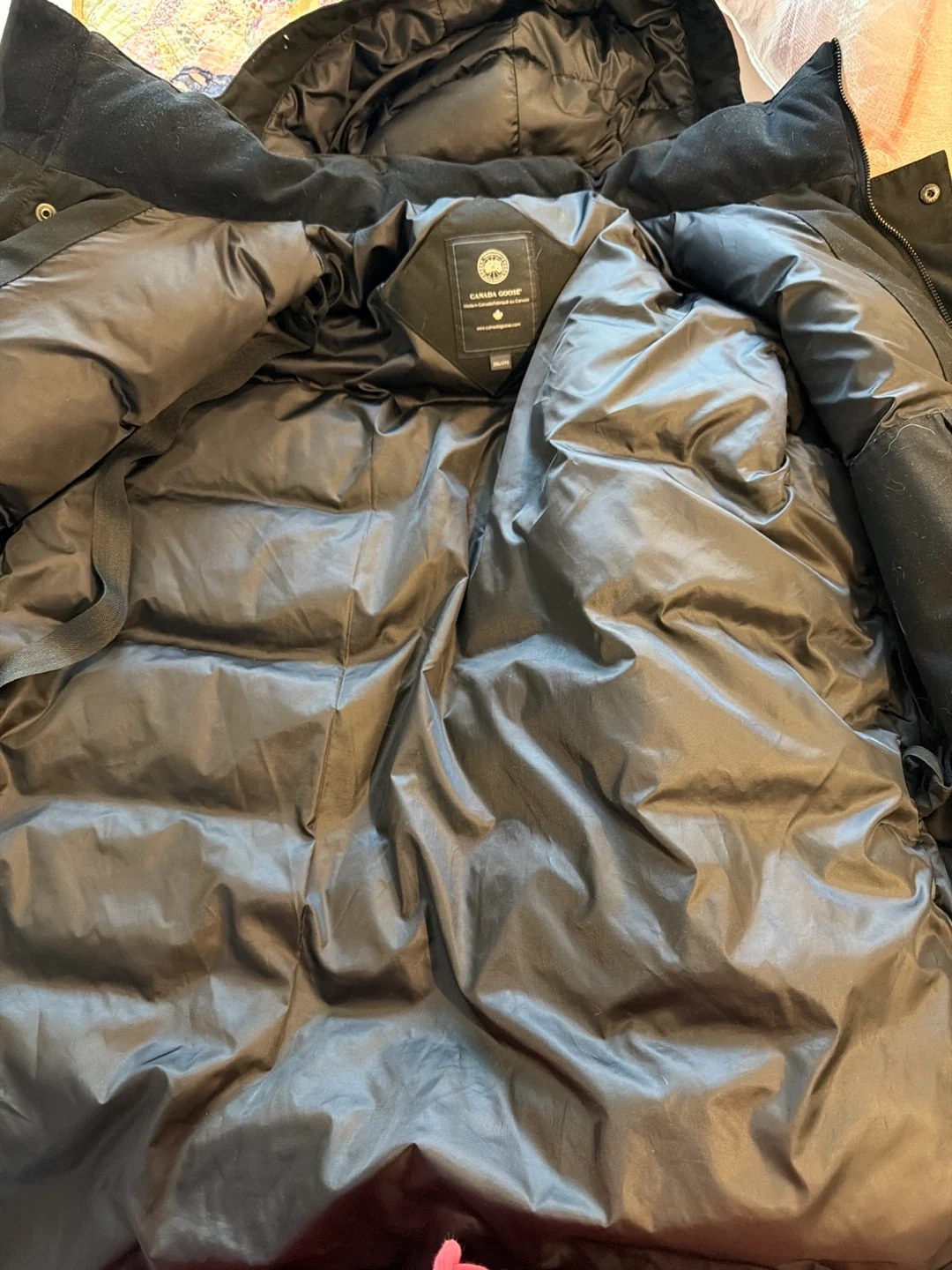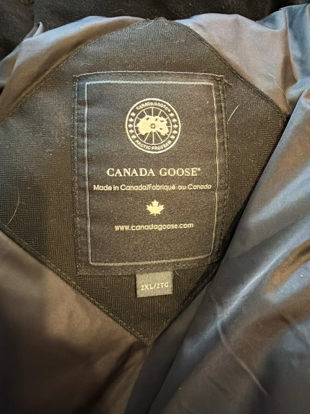 This Canada Goose parka jacket is black and size 2XL. It's made in Canada and features a full-zip closure with button snaps. The jacket is insulated for warmth. It's great for cold weather!