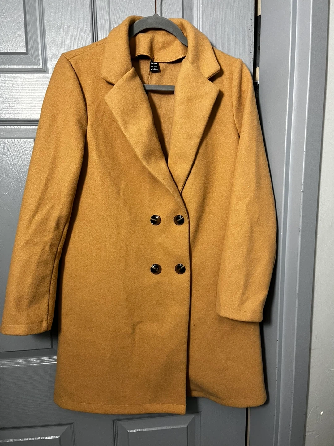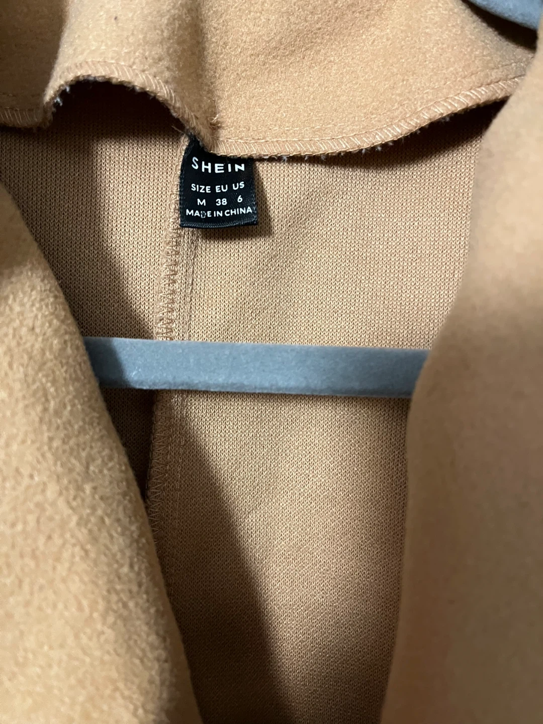 A stylish Shein coat in a classic camel colour.