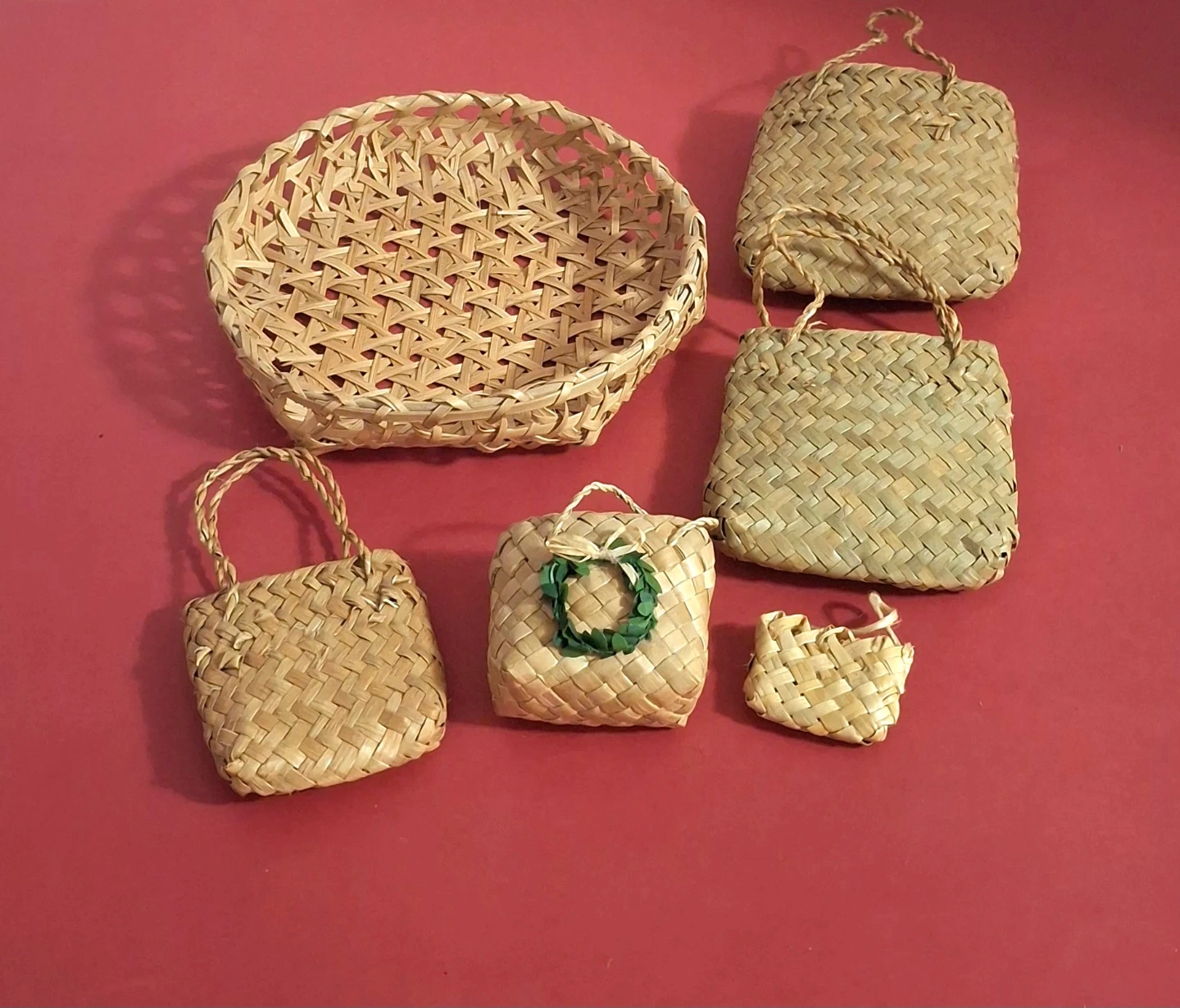 An assortment of beautiful new wicker and straw items including a bowl (18 cm diameter), and 5 small baskets in assorted sizes (3-11 cm) for just $1 - $3 each. Or buy all 6 items for $12.