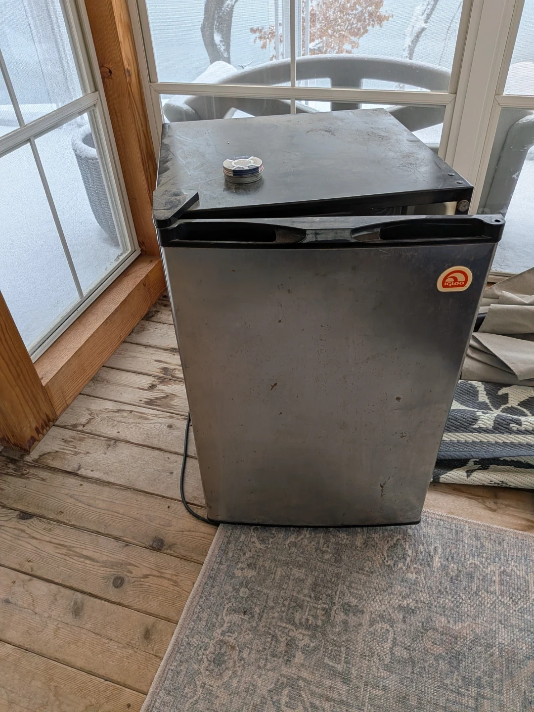 10Selling a compact Igloo mini fridge. It's in good condition and perfect for a dorm room, office, or small space. It's black in color and ready to keep your drinks and snacks cool!