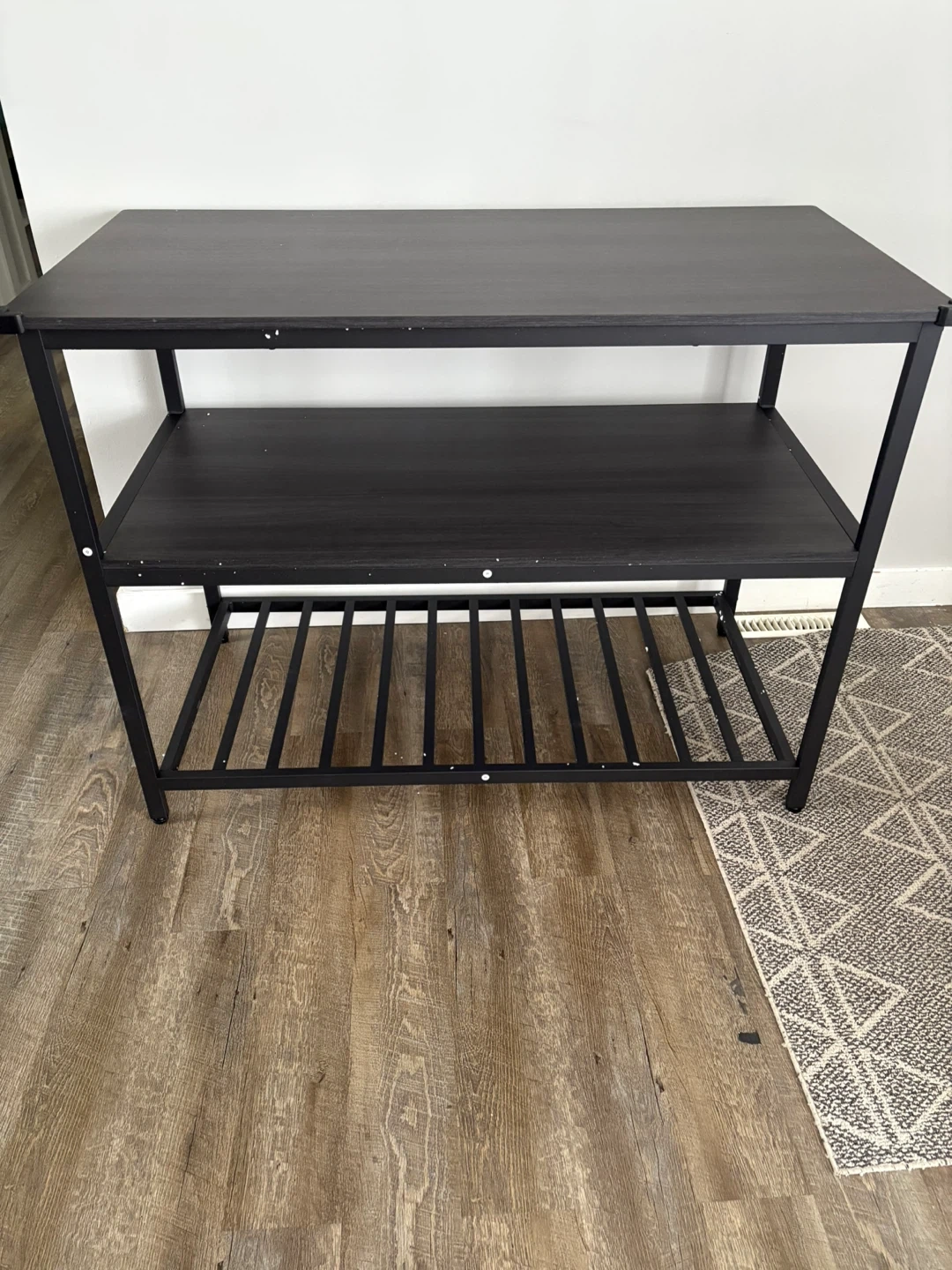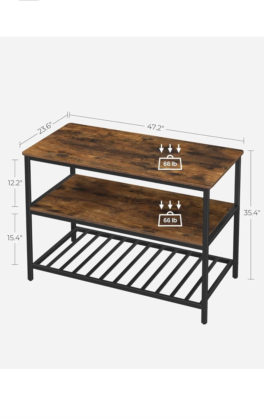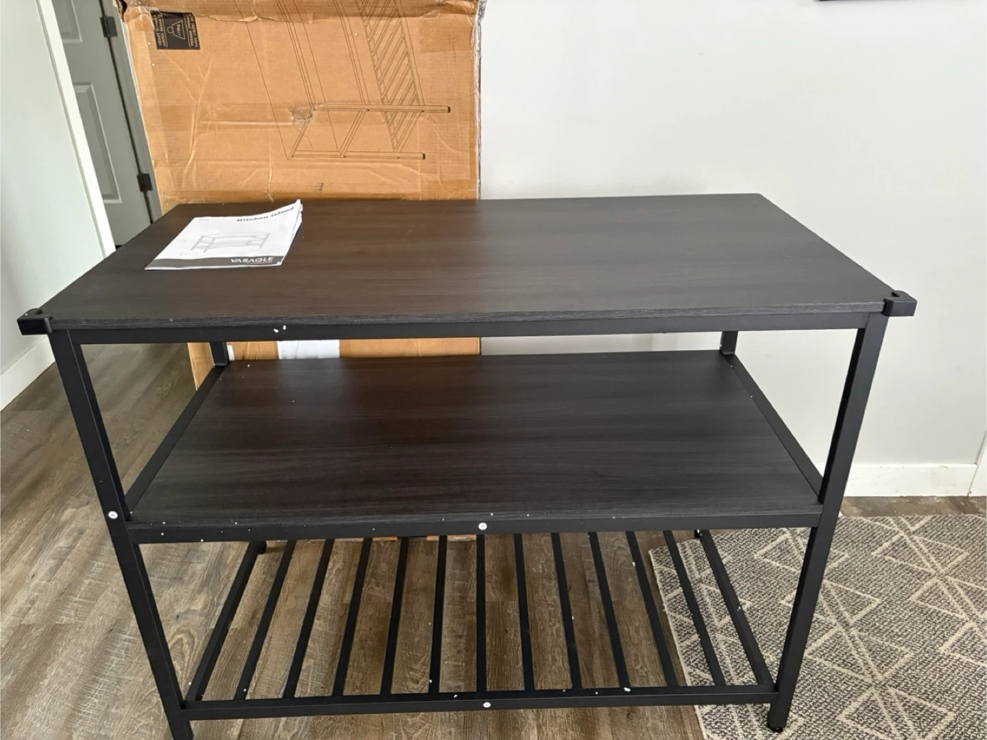 Brand new Kitchen Island with 3 Shelves, 47.2 Inches Kitchen Shelf with Large Worktop, Stable Steel Structure, Industrial, Easy to Assemble, Rustic Black