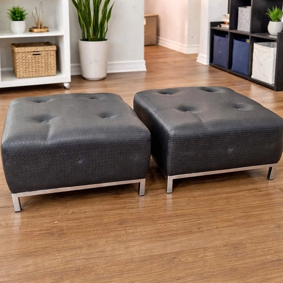 Elevate your living space with this stunning matching pair of Safavieh Sienna Square Ottomans. These are high-quality designer pieces inspired by the iconic modernist architecture of Mies van de Rohe. Get the designer look for a fraction of the price!