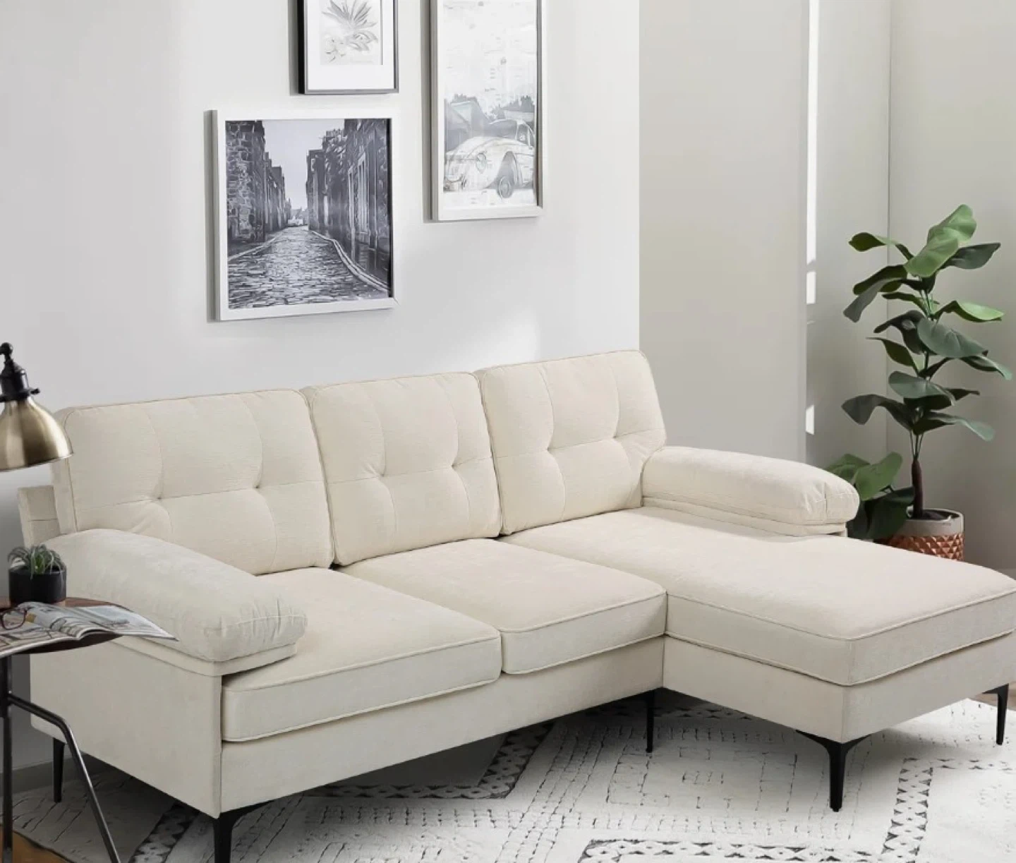 Cream Upholstered Sectional Sofa