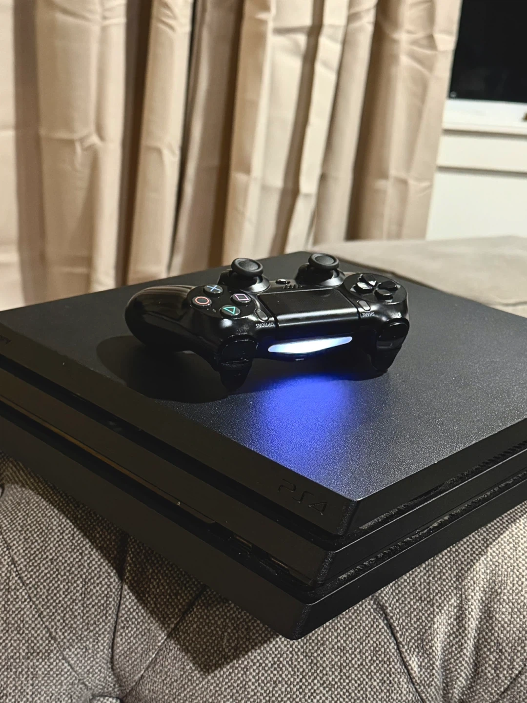 Selling a PlayStation 4 Pro console in black, complete with a controller. It's in great shape and ready for a new home! Perfect for gaming enthusiasts.