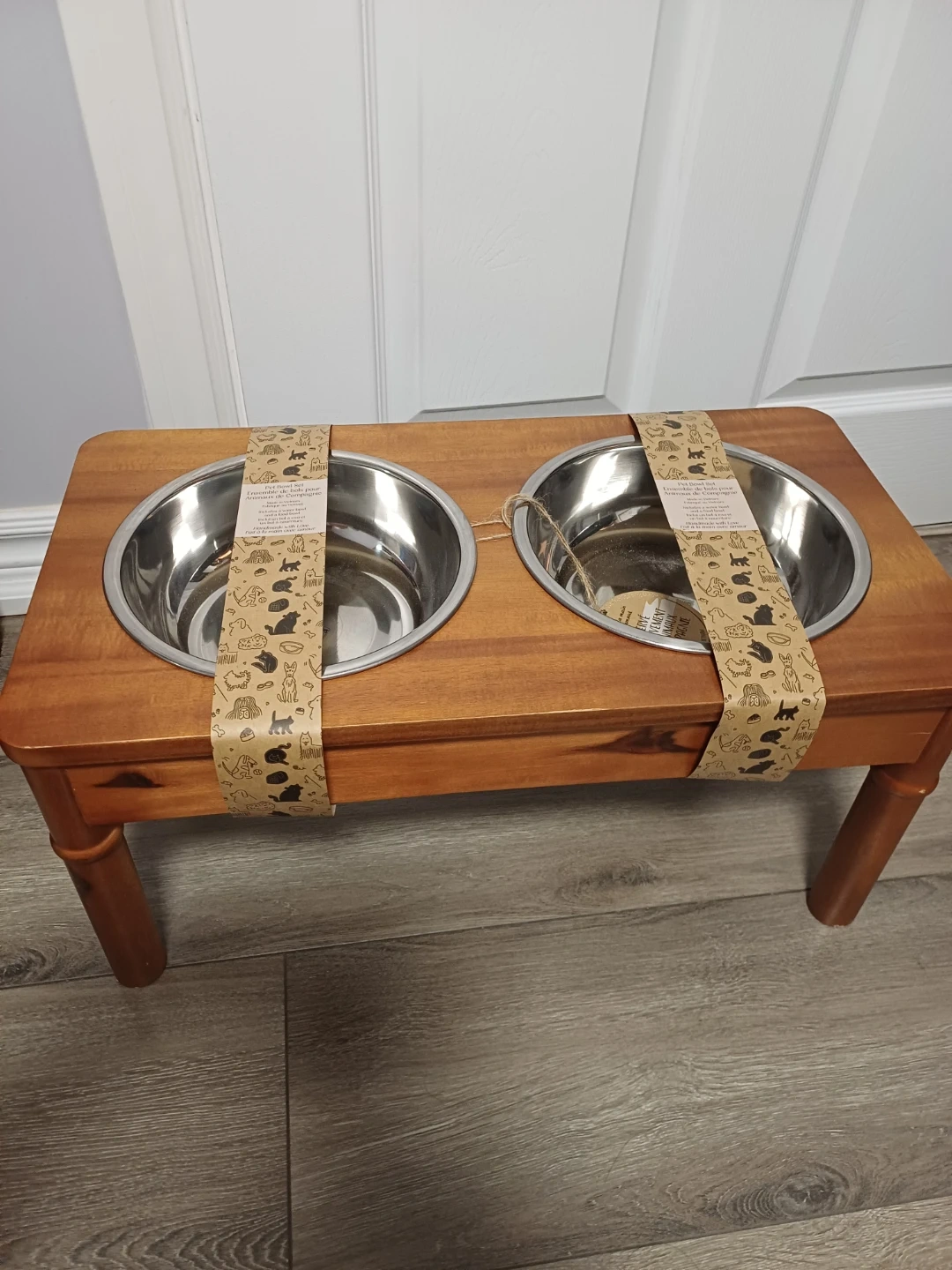 Selling a brand new...Raised feeder with two stainless steel bowls.
