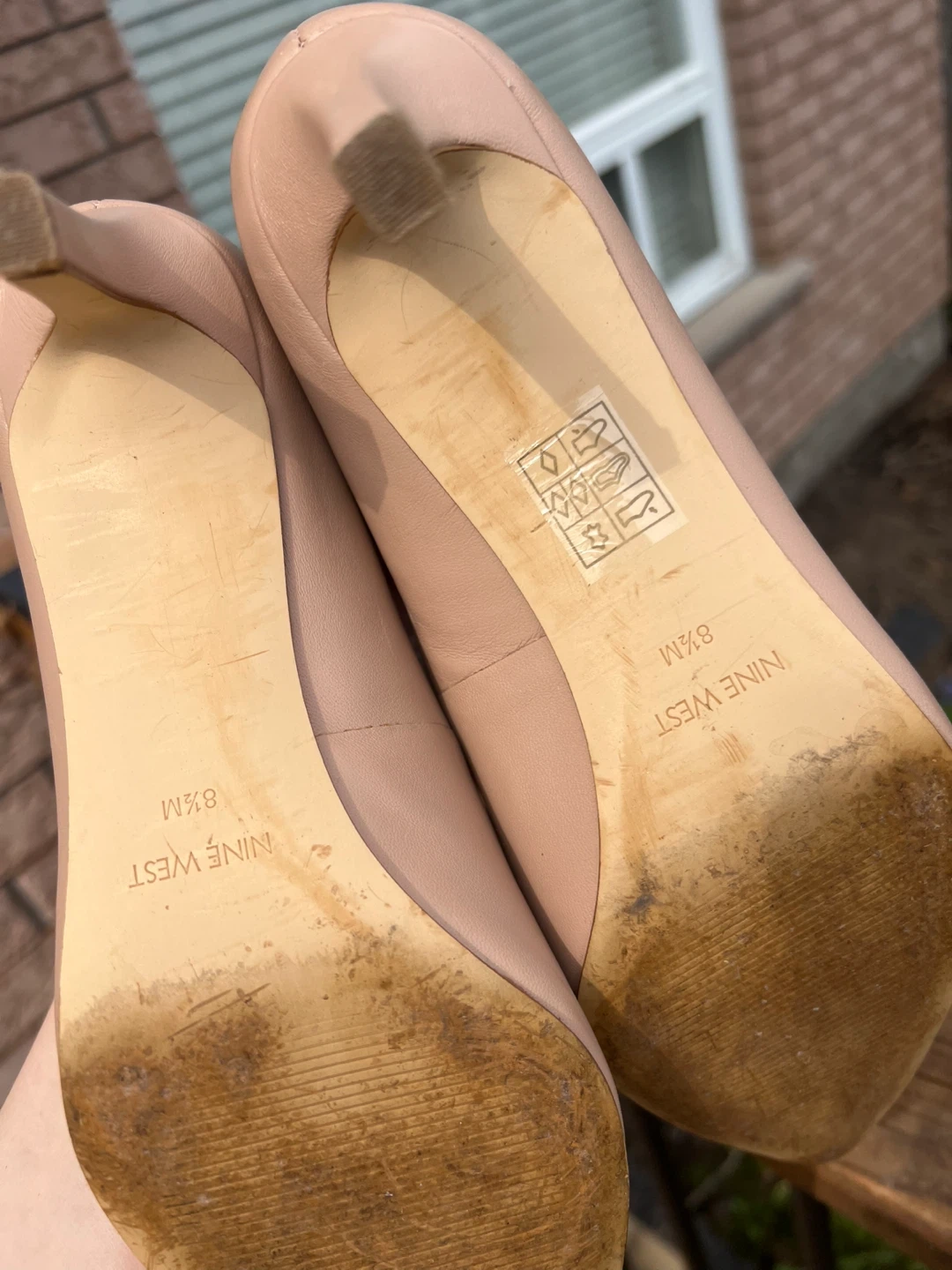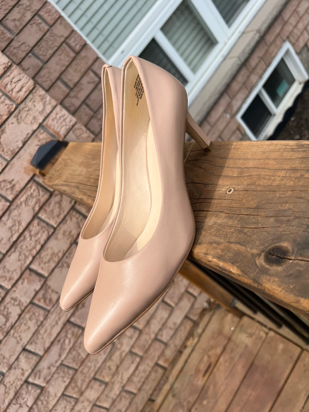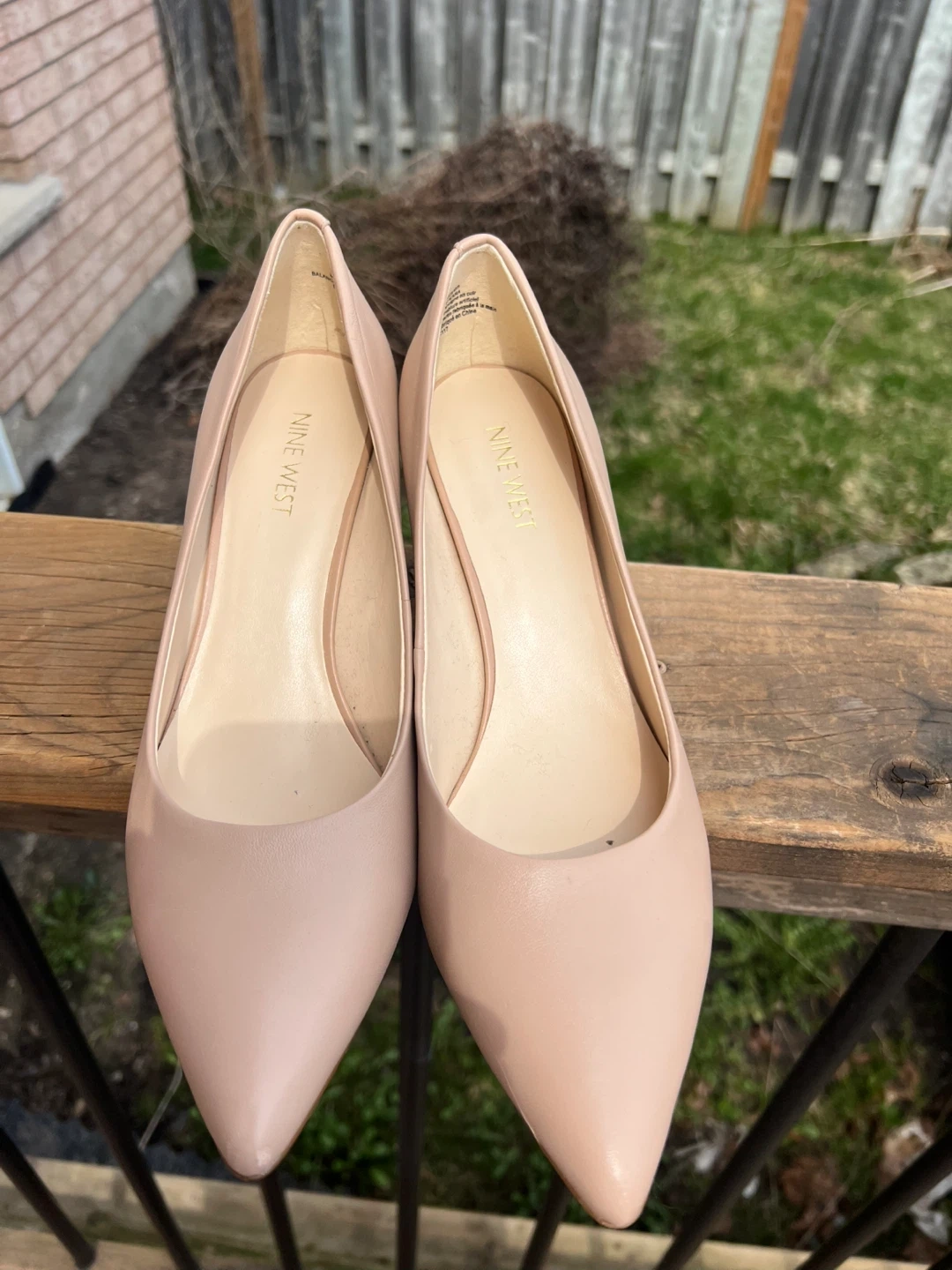 These Nine West heels are a lovely nude colour and feature a classic pointed toe. They're size 8.5M. Perfect for dressing up any outfit! Comfortable heel