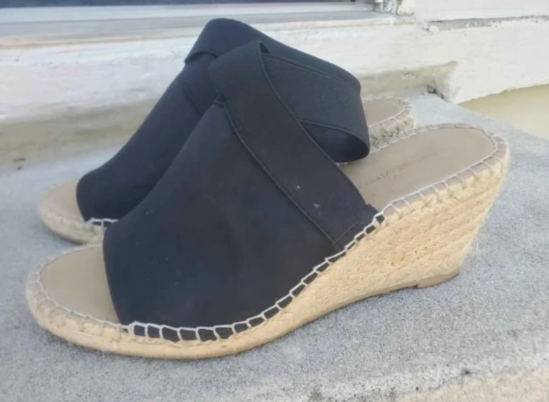 Adrienne Vittadini Black Wedge Espadrille Sandals Size 7.5M