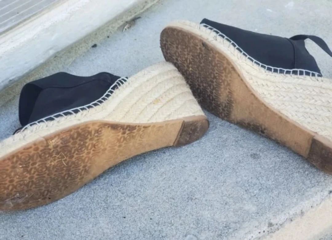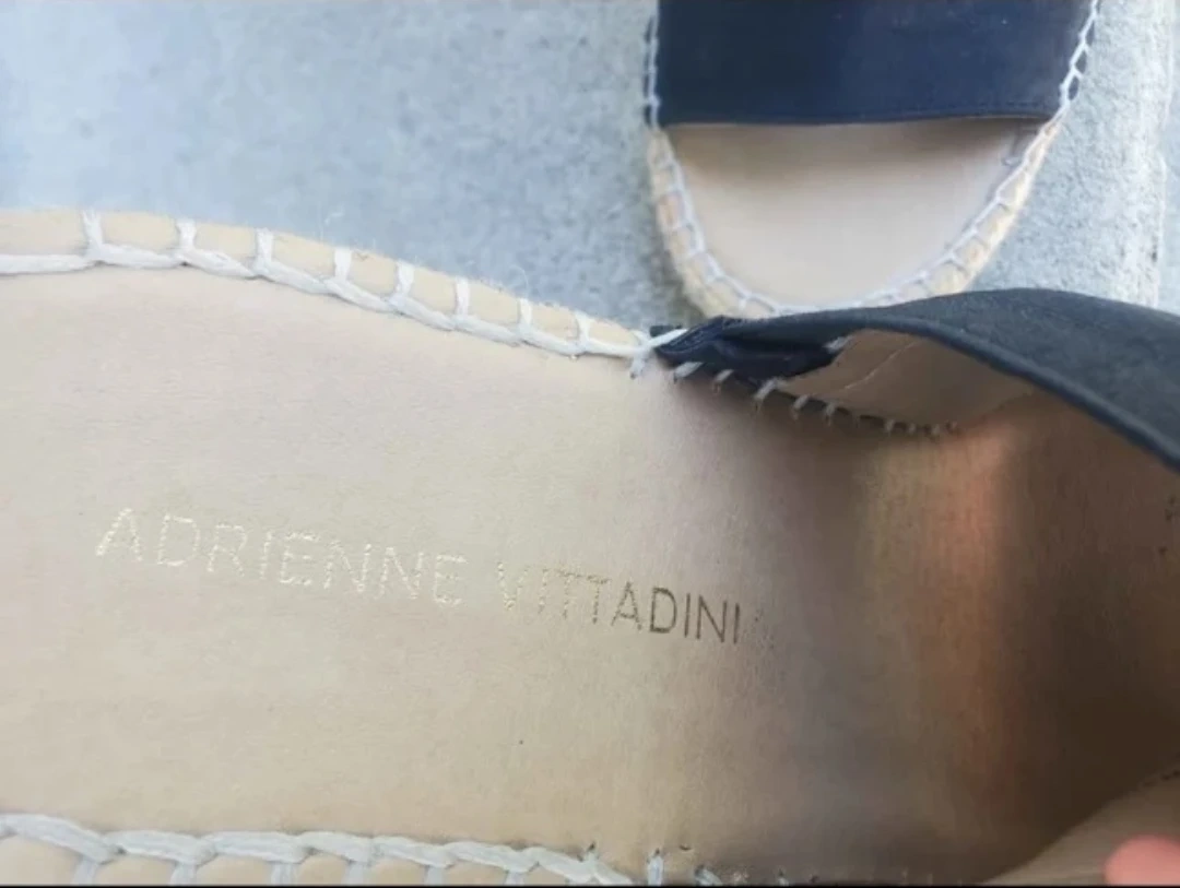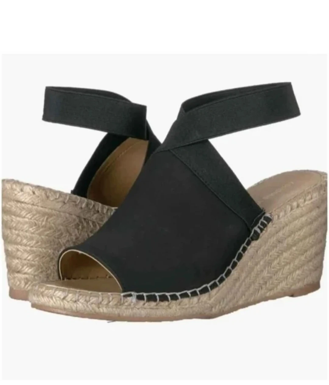 Adrienne Vittadini wedge espadrille sandals. Black elastic crisscross straps with an open toe design. Espadrille jute detailing along the sole. Size 7.5 Medium. Pickup location eglinton and dufferin area