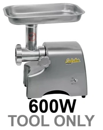 I'm selling a Cabela's Deluxe Meat Grinder, a sturdy and powerful appliance for grinding everything from fresh beef to pork. This grinder features a quiet yet powerful 600W DC motor, capable of grinding over 4 lbs of meat per minute, making it easy to whip up sausages and snack sticks.