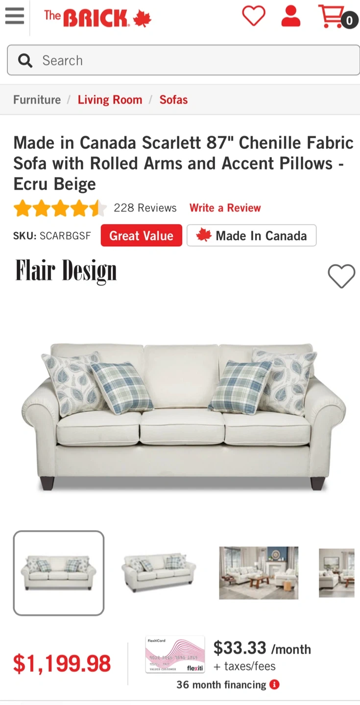 Purchased from The Brick 2 years ago.
