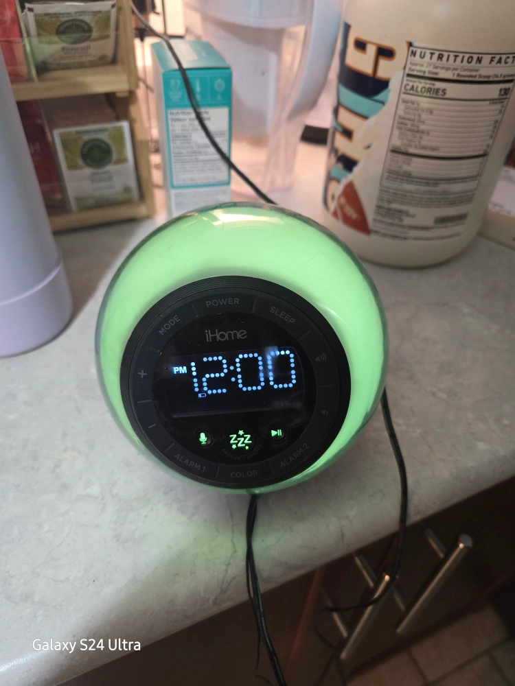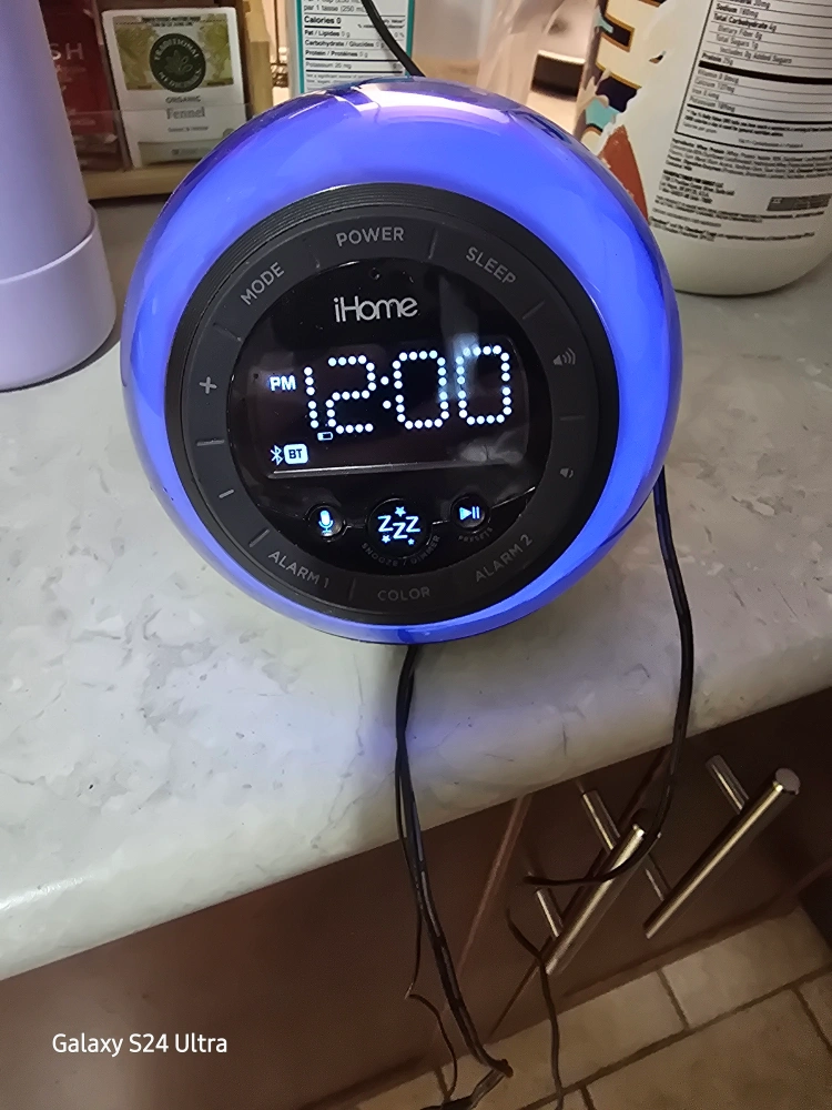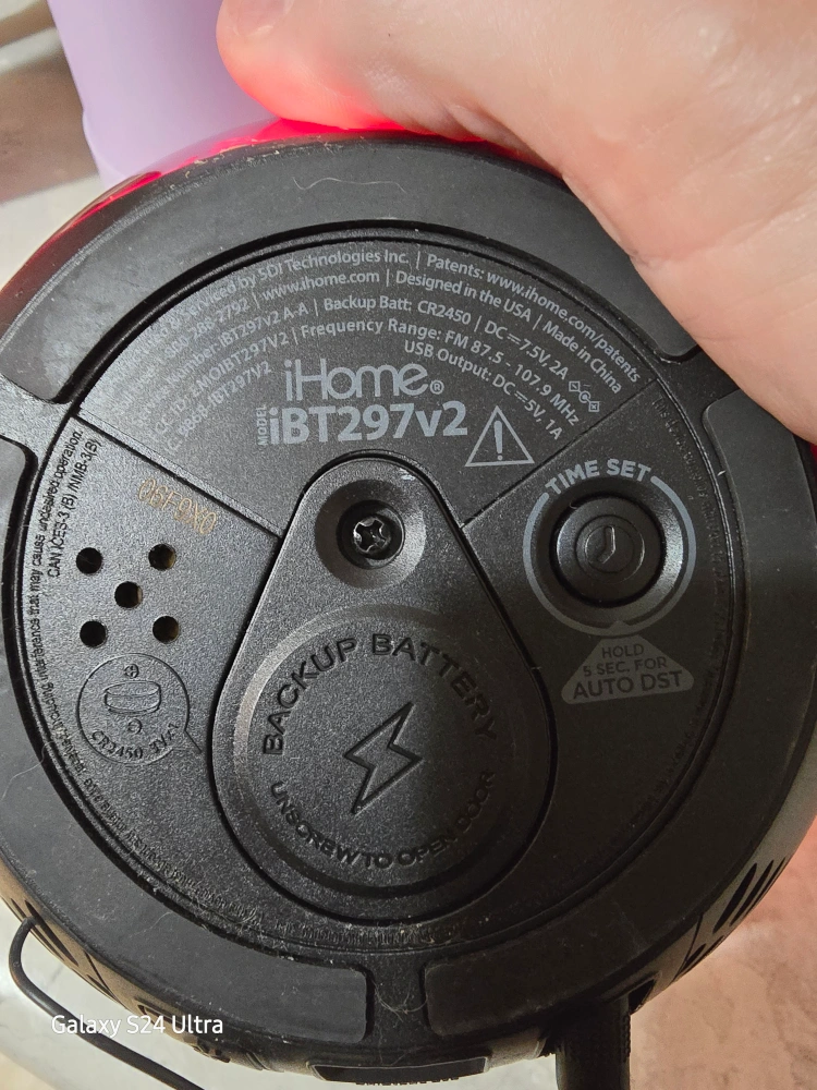 Selling an iHome iBT297V2 colour changing Bluetooth alarm clock! This clock has a backup battery and a USB output of DC=5V, 1A. It also has a frequency range of FM 87.5 - 107.9 MHz. The model number is iBT297V2.