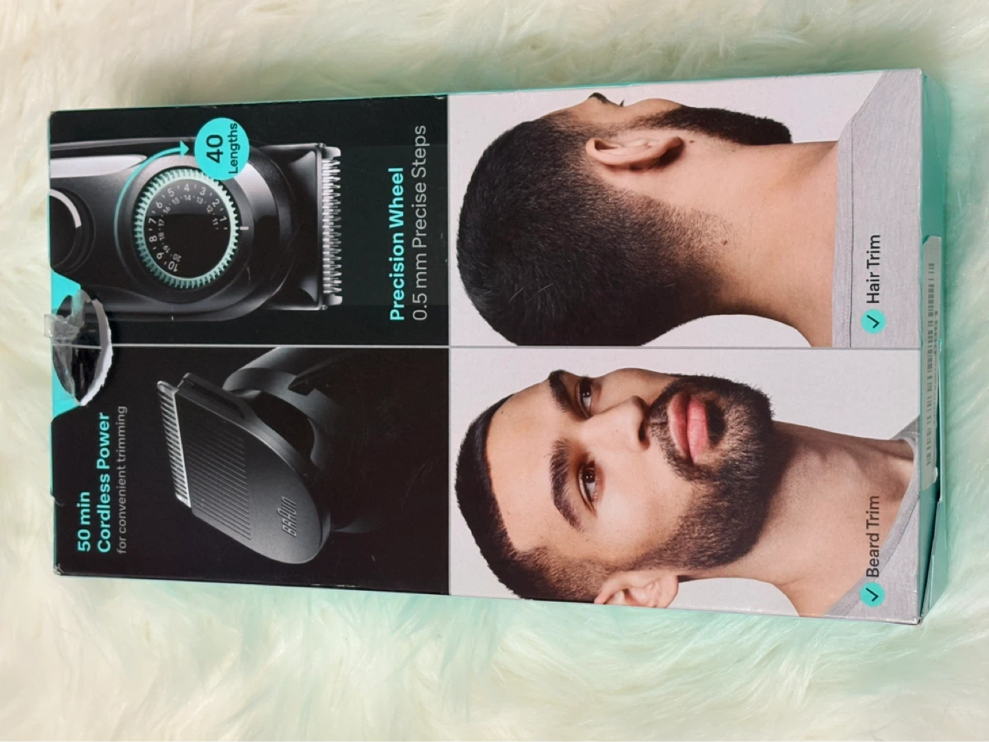 Braun All-in-One 3 trimmer kit for effortless precision. It has 40 length settings from 0.5 mm to 20 mm with 0.5 mm precise steps. Includes 4 pieces and the charger.
