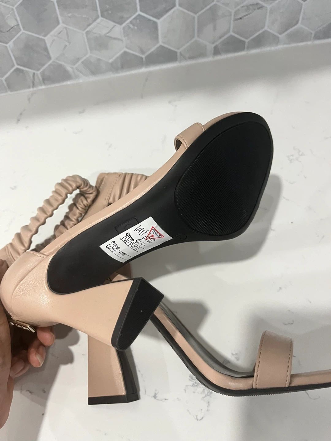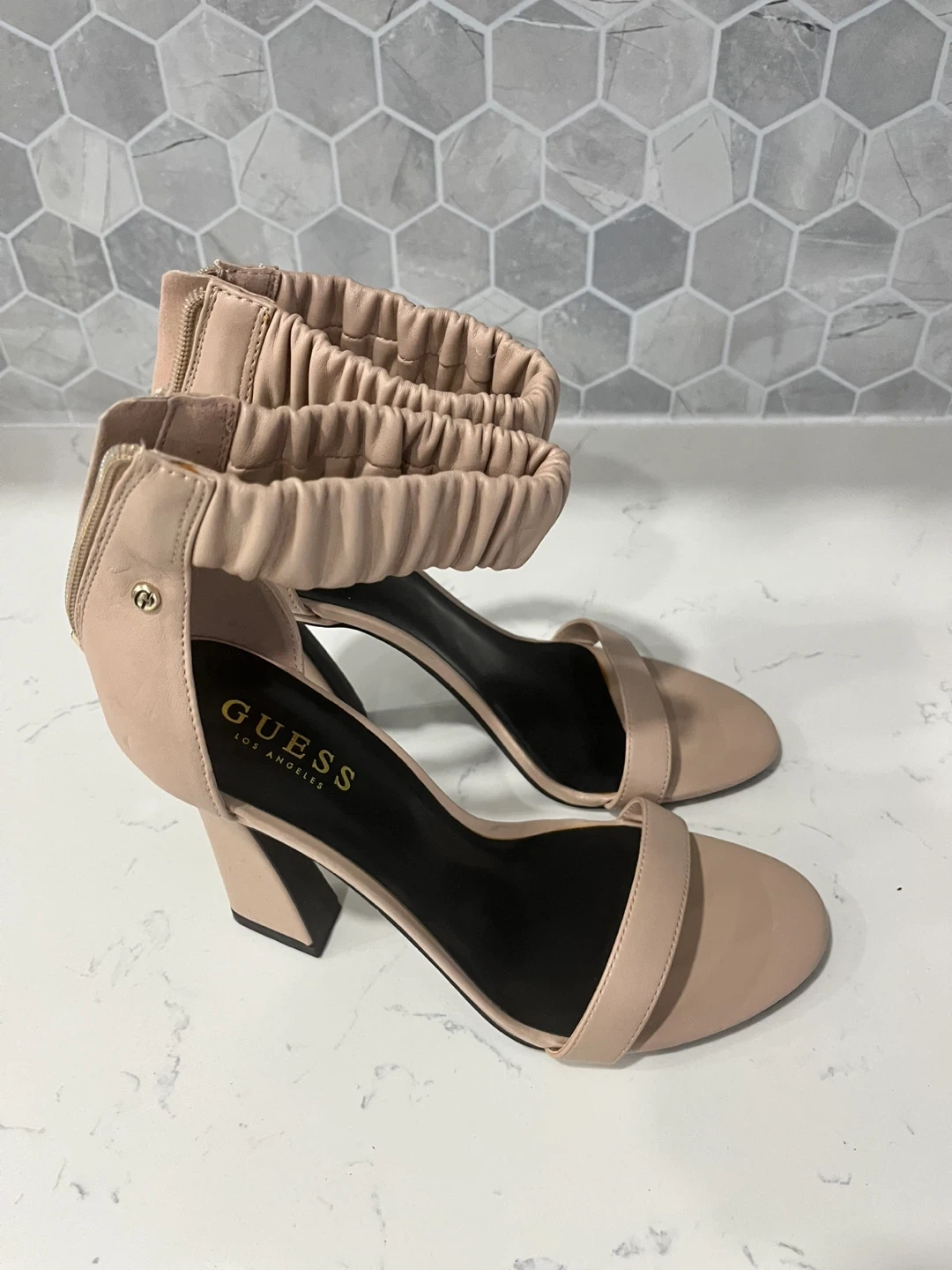 Selling a pair of Guess heels in a lovely beige colour! They are a size 8.5 and feature a unique zipper detail on the back. Perfect for dressing up any outfit!Never worn