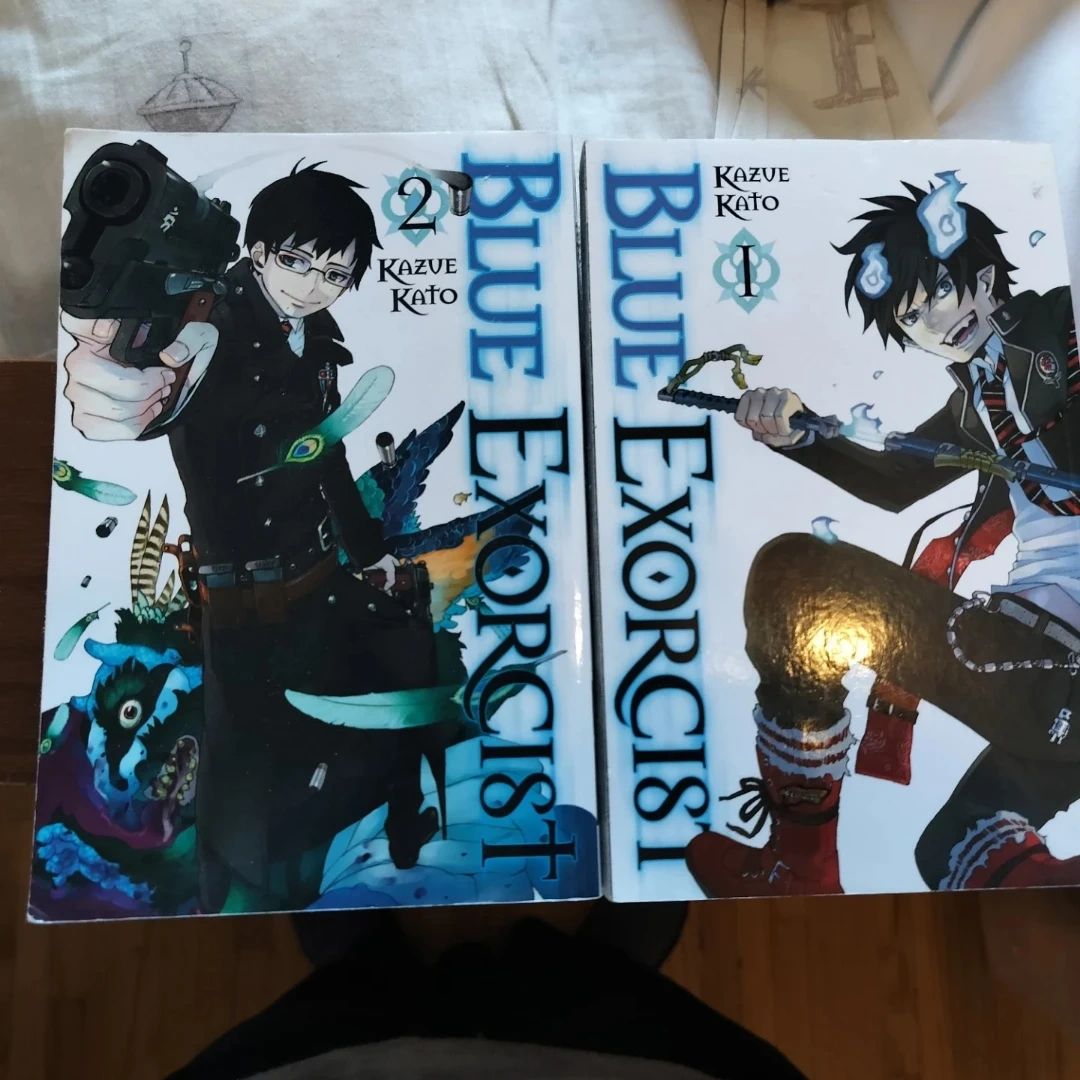 This is the Blue Exorcist manga series by Kazue Kato, featuring volumes 1 and 2. They're in great condition. These books are great for any manga collector!