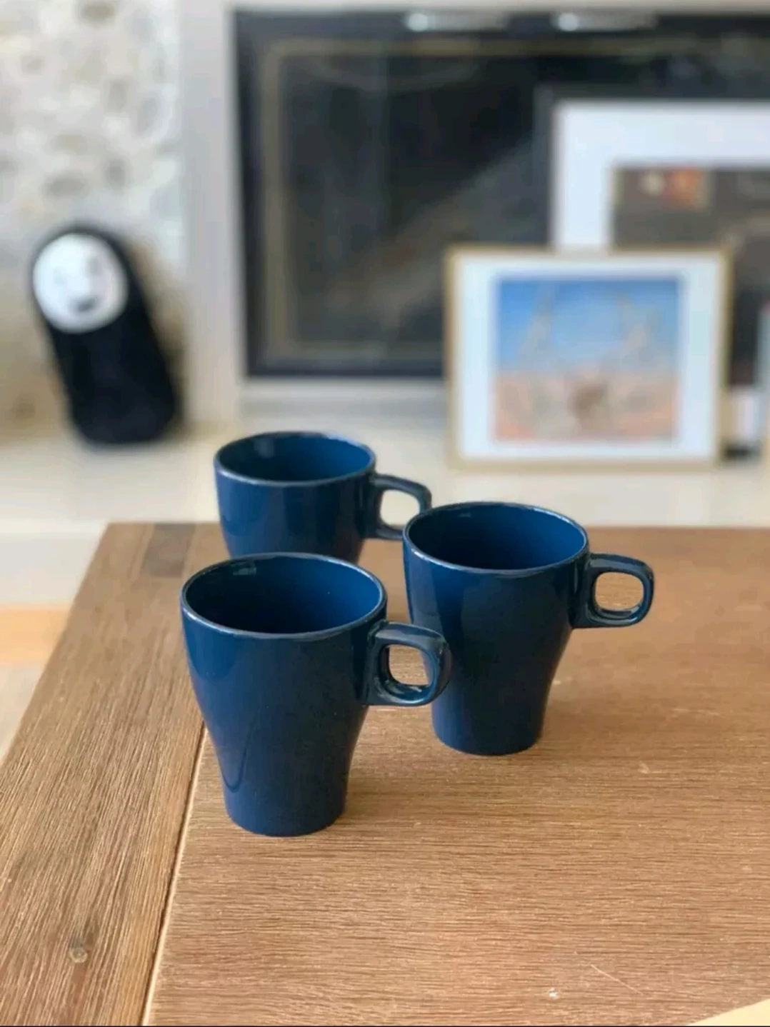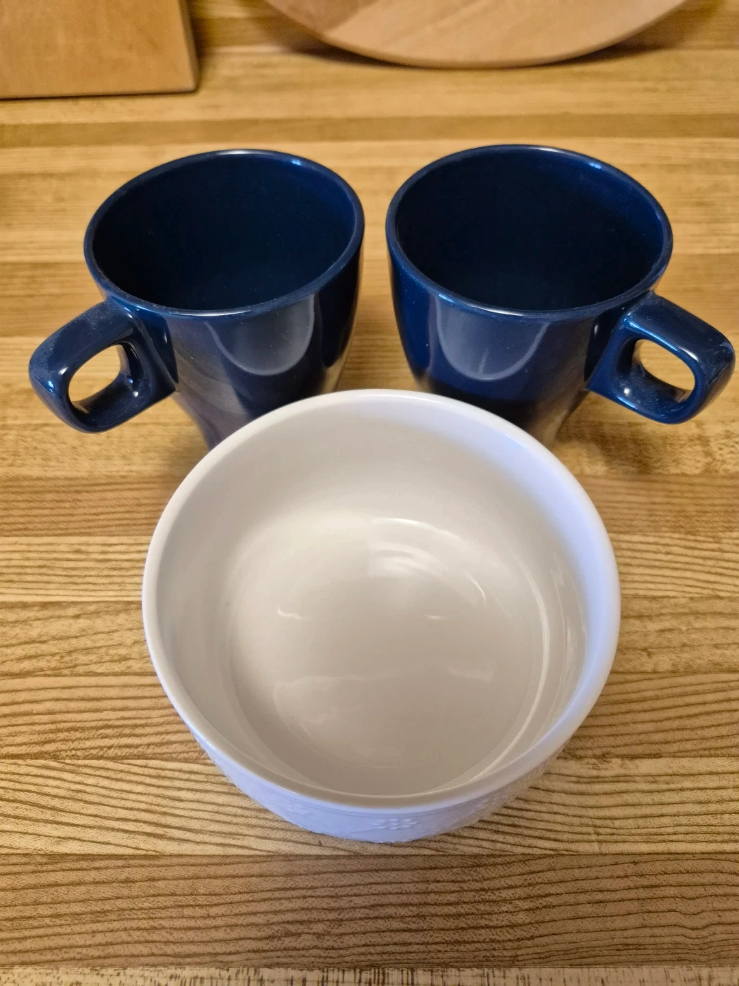 β 2 midnight blue mugs, gently used in excellent condition, no tea or coffee stains [note: photo shows 3 but there are only 2 mugs], and