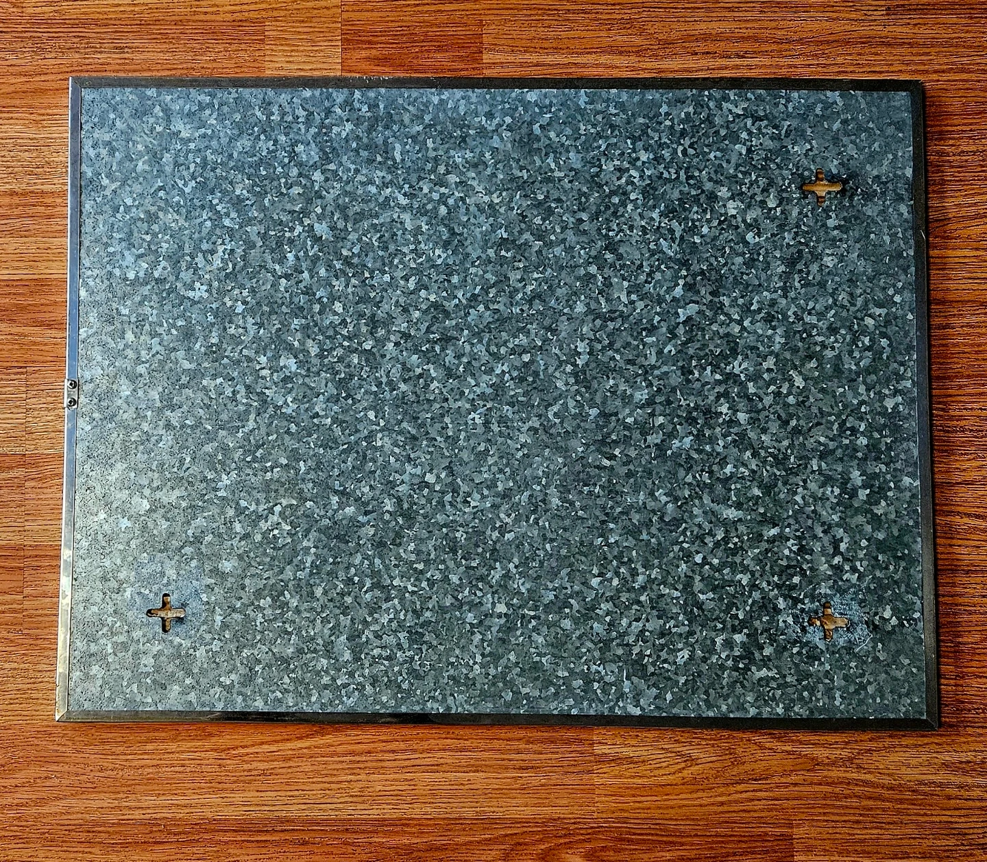 A rectangular wall mirror with a simple metal frame. It's ideal for adding a reflective surface to any room. The back is made of galvanized metal for durability.