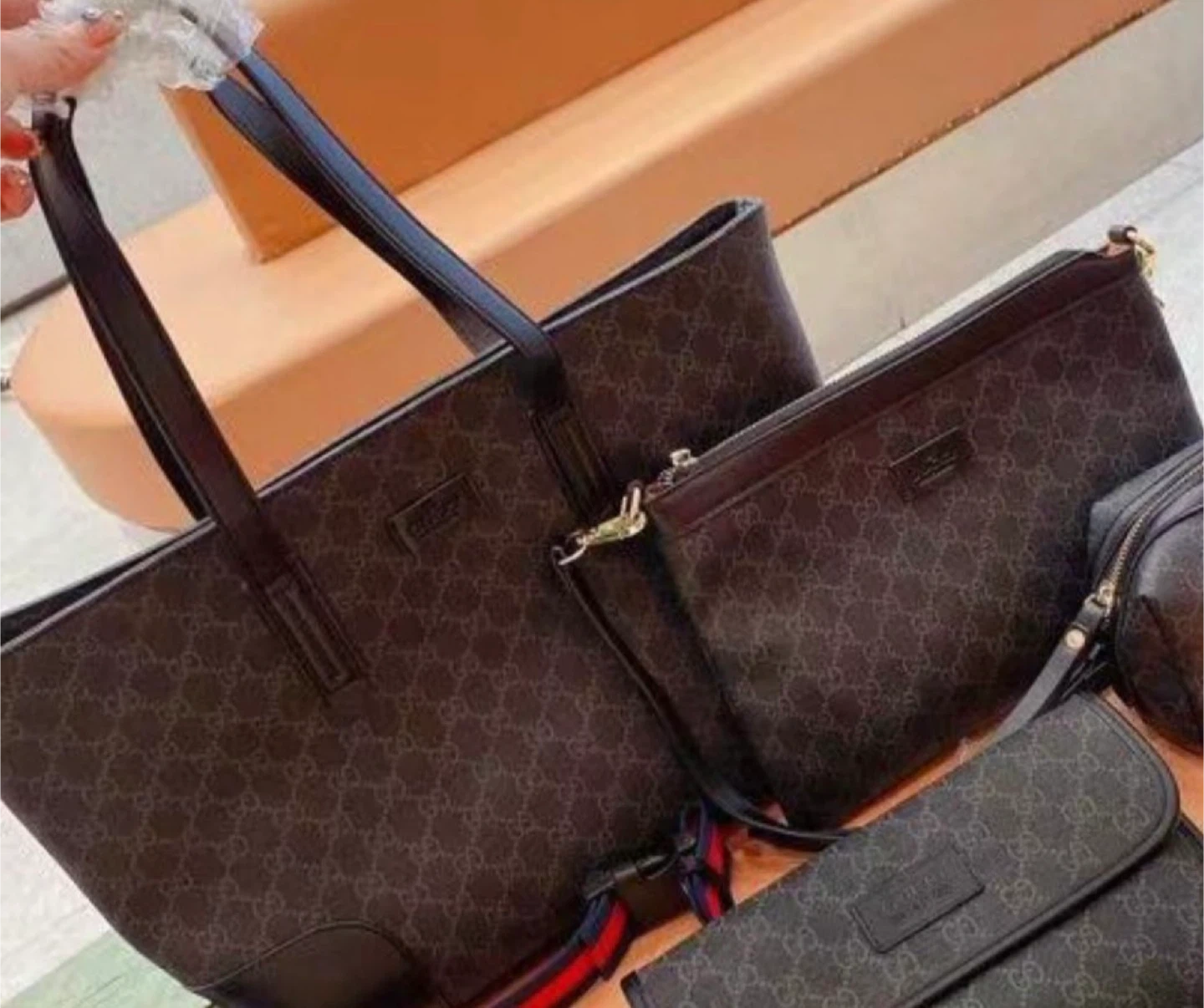 Gucci Monogram Canvas Tote Bag Set with Pouches