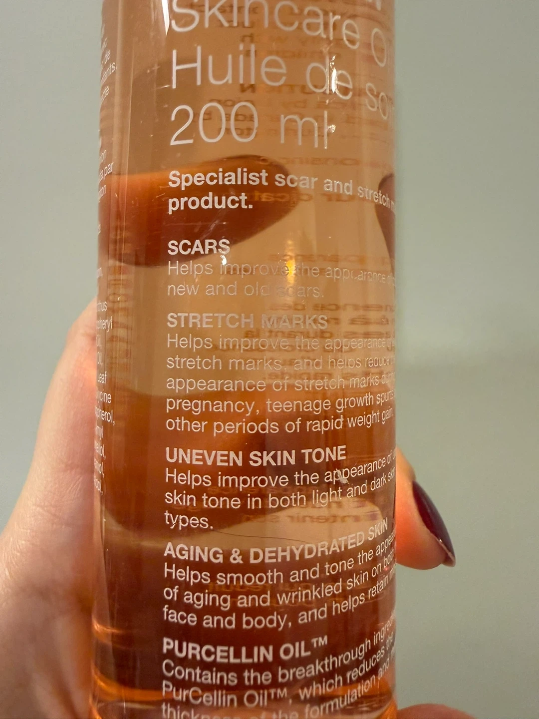 Brand new Bio-Oil specialist scar and stretch mark product. It helps improve the appearance of scars, stretch marks, uneven skin tone, and aging and dehydrated skin. 200 ml bottle.