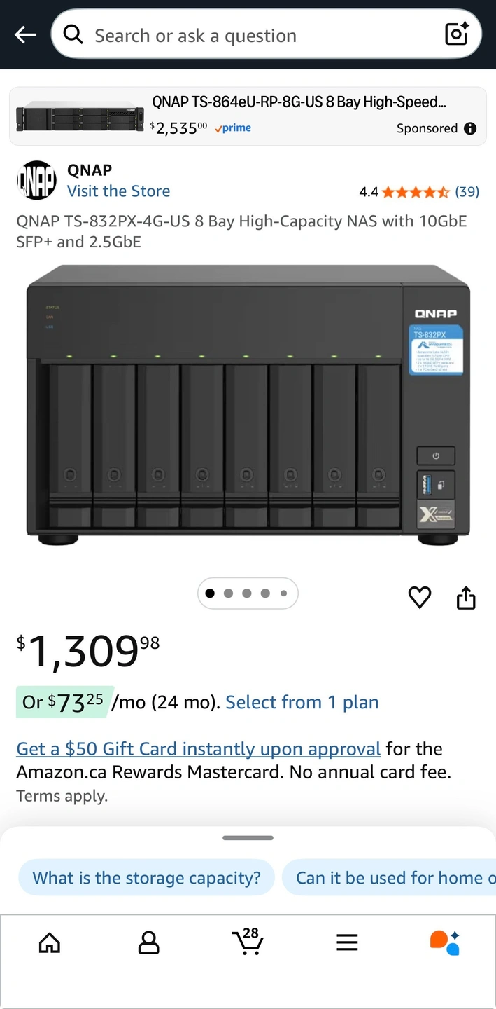 QNAP TS-832PX-4G-US 8 Bay High-Capacity NAS with 10GbE SFP+ and 2.5GbE