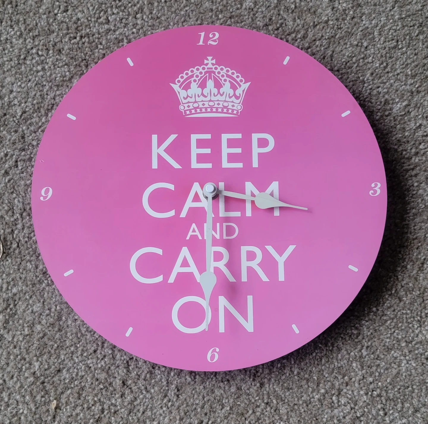 Pink "Keep Calm and Carry On" Novelty Wall Clock