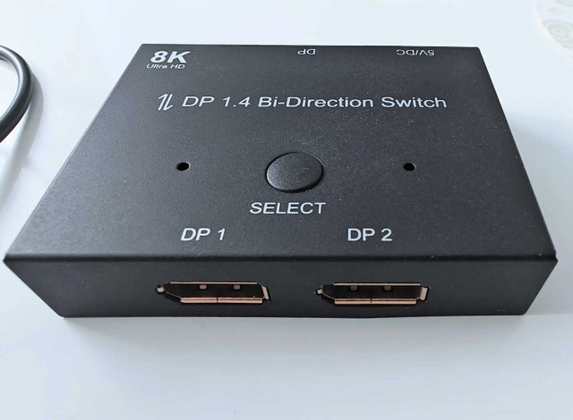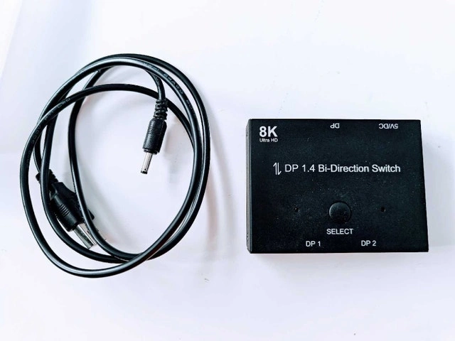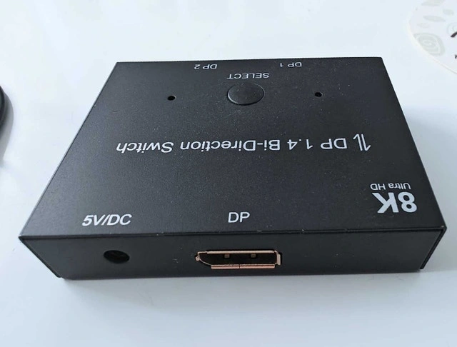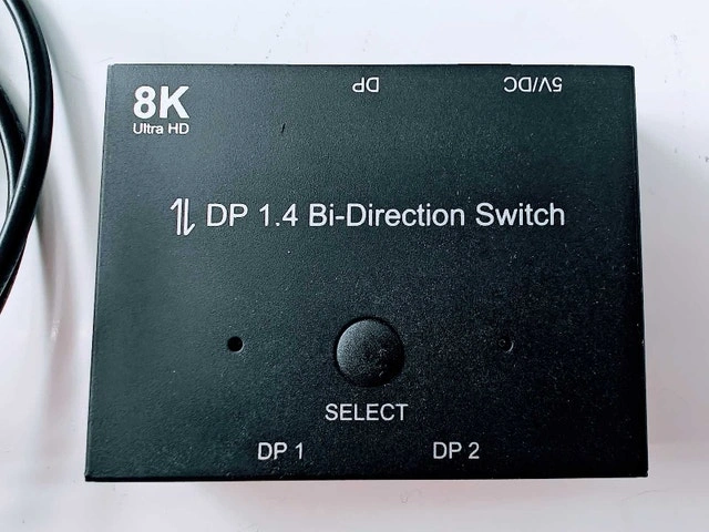 Selling a few months old Display Port - Bi-directional Switch that supports up to 8K Ultra HD, USB Powered. DisplayPort Switch Box 8K Splitter Bidirectional DP 1.4 Switcher 2 in 1 Out / 1 in 2 Out Supports 8K @ 30Hz 4K @ 120Hz Compatible with PC Host Monitor Laptop etc Ideal to use it with 2 computers with 1 monitor or 1 computer with 2 monitors - selecting one at a time. Please see pictures for the exact product. Bought on Amazon.