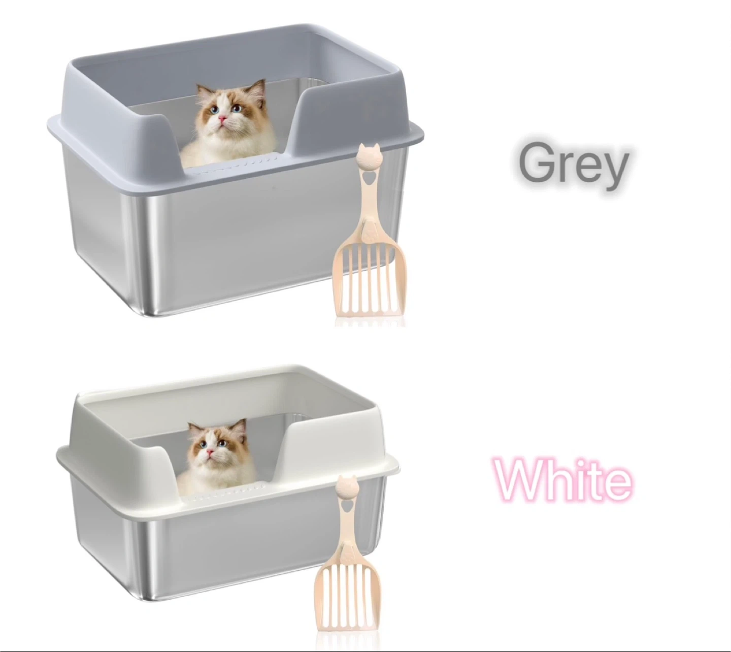 XL 20L,Stainless Steel Cat Litter Box – High Sides, No Smell, Ea