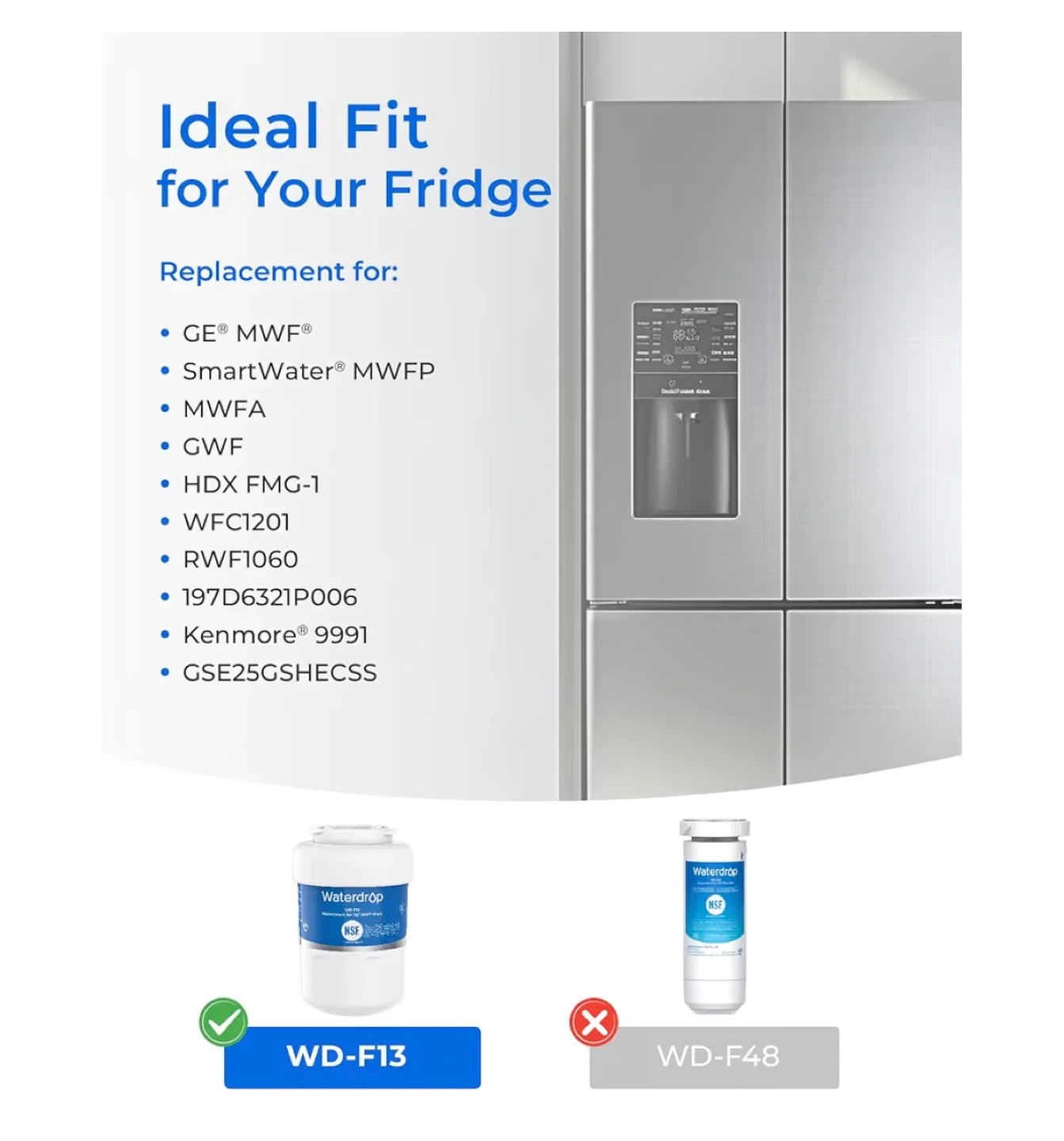 Selling a pack of three Waterdrop WD-F13 refrigerator water filters. These are replacement elements for GE MWF filters. They're also NSF certified, ensuring quality and safety for your drinking water! Ideal fit for your fridge