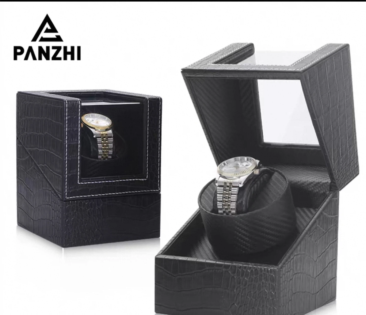 Selling an automatic watch winder in black crocodile faux leather. It's perfect for keeping your automatic watches wound and ready to wear. It comes with the power adapter or insert batteries for wireless display.