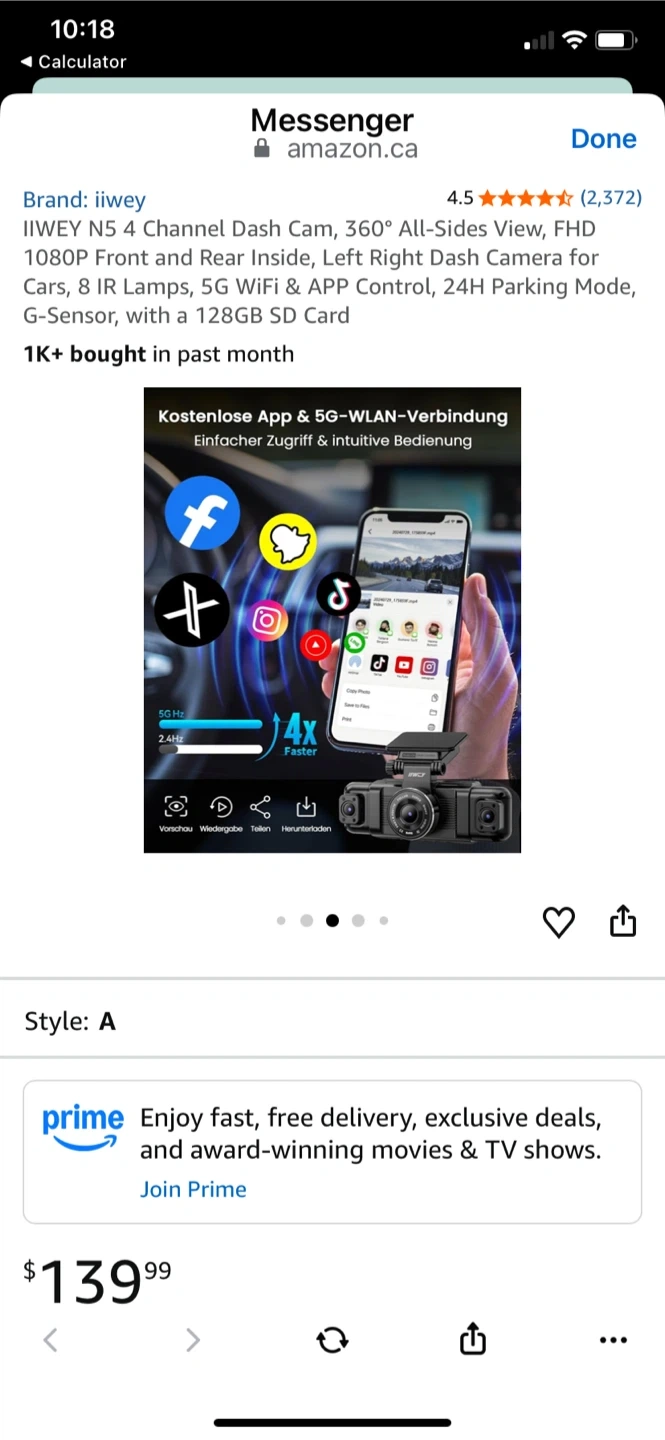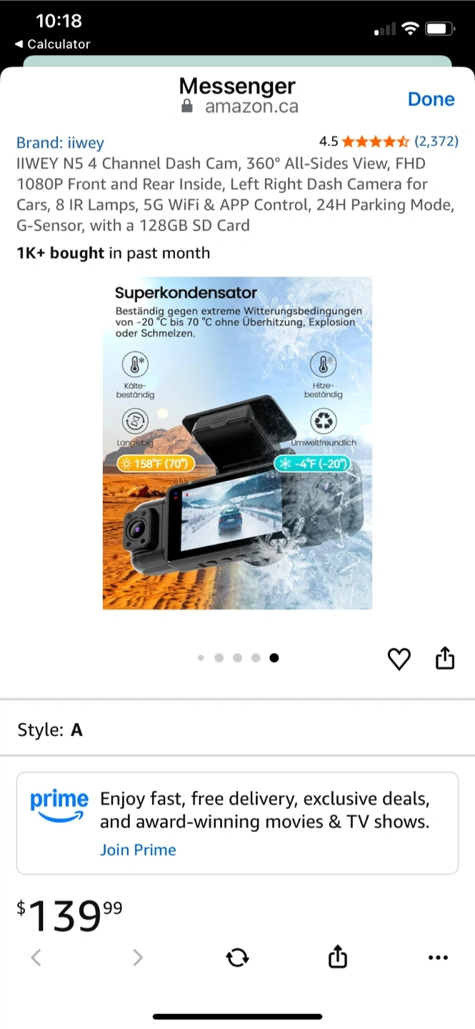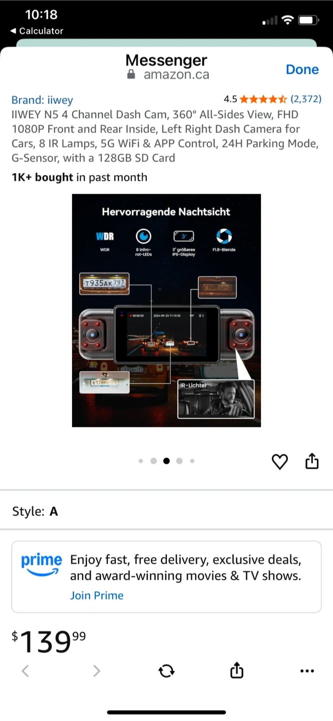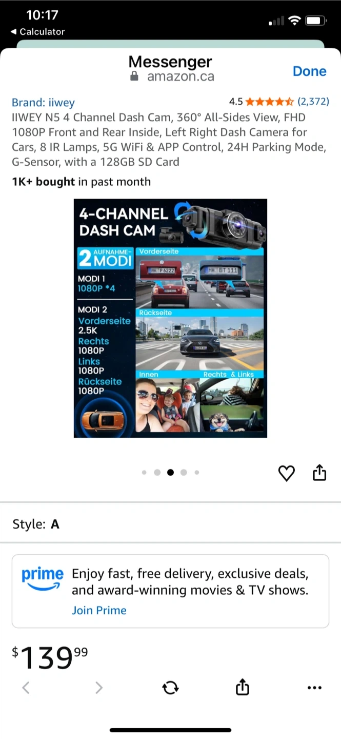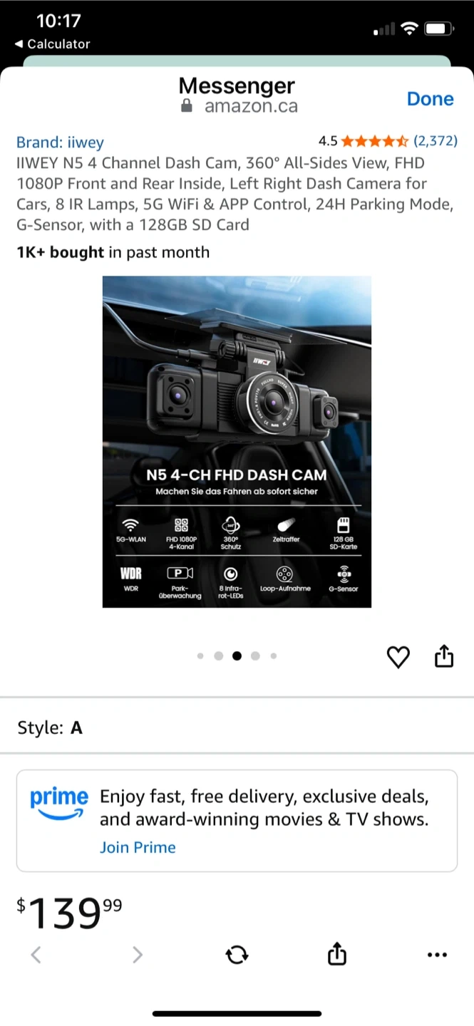 21Selling a brand new iiwey N5 4 Channel Dash Cam! It features: - 360° All-Sides View - FHD 1080P Front and Rear Inside - Left Right Dash Camera for Cars - 8 IR Lamps - 5G WiFi & APP Control - 24H Parking Mode - G-Sensor - 128GB SD Card Originally bought for $139.99 plus tax
