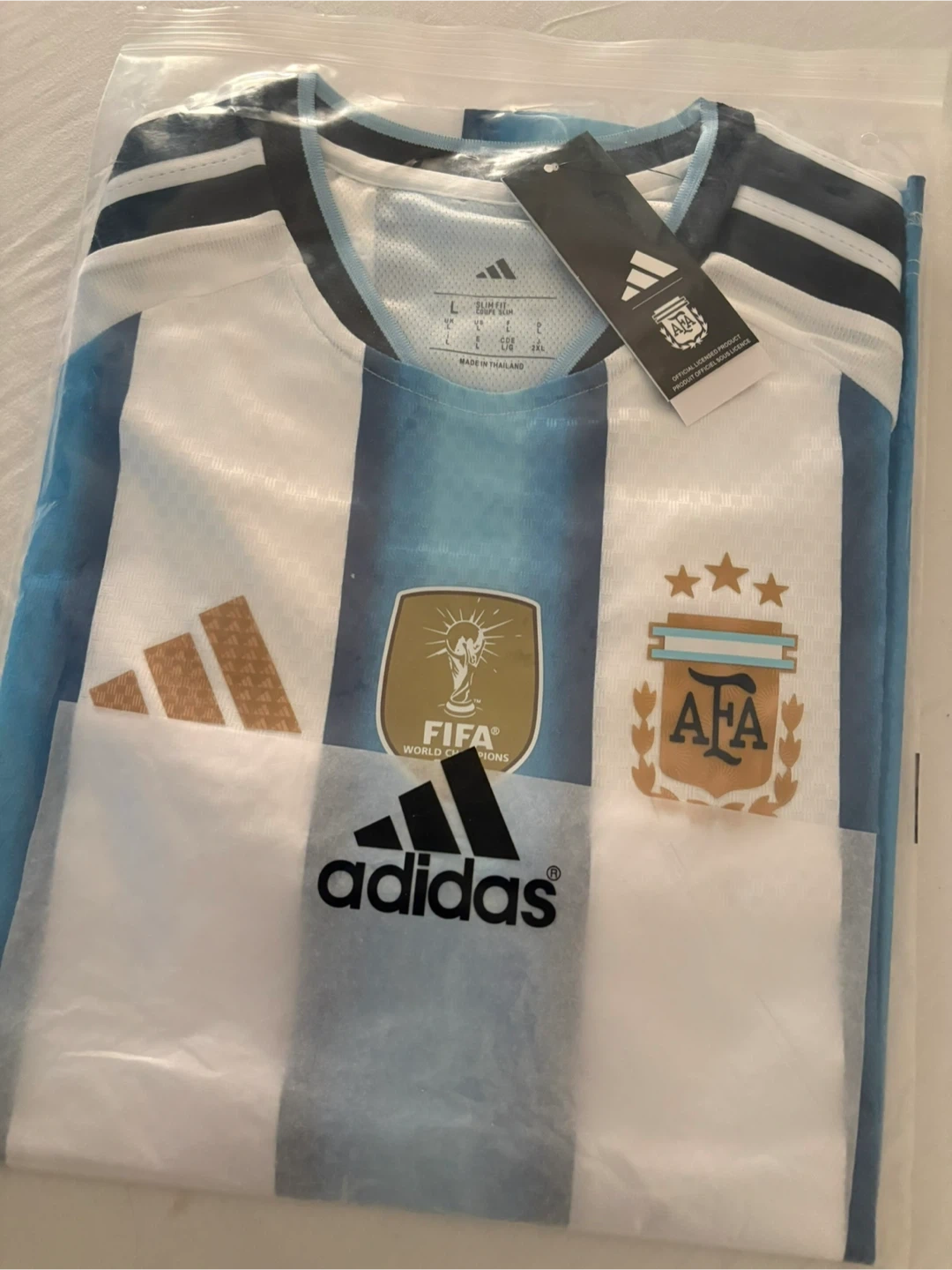 Brand new Argentina Adidas jersey, never worn. This was an unwanted gift, so it has never been used. The jersey comes complete with the Adidas tags and packaging, as shown in the photos.