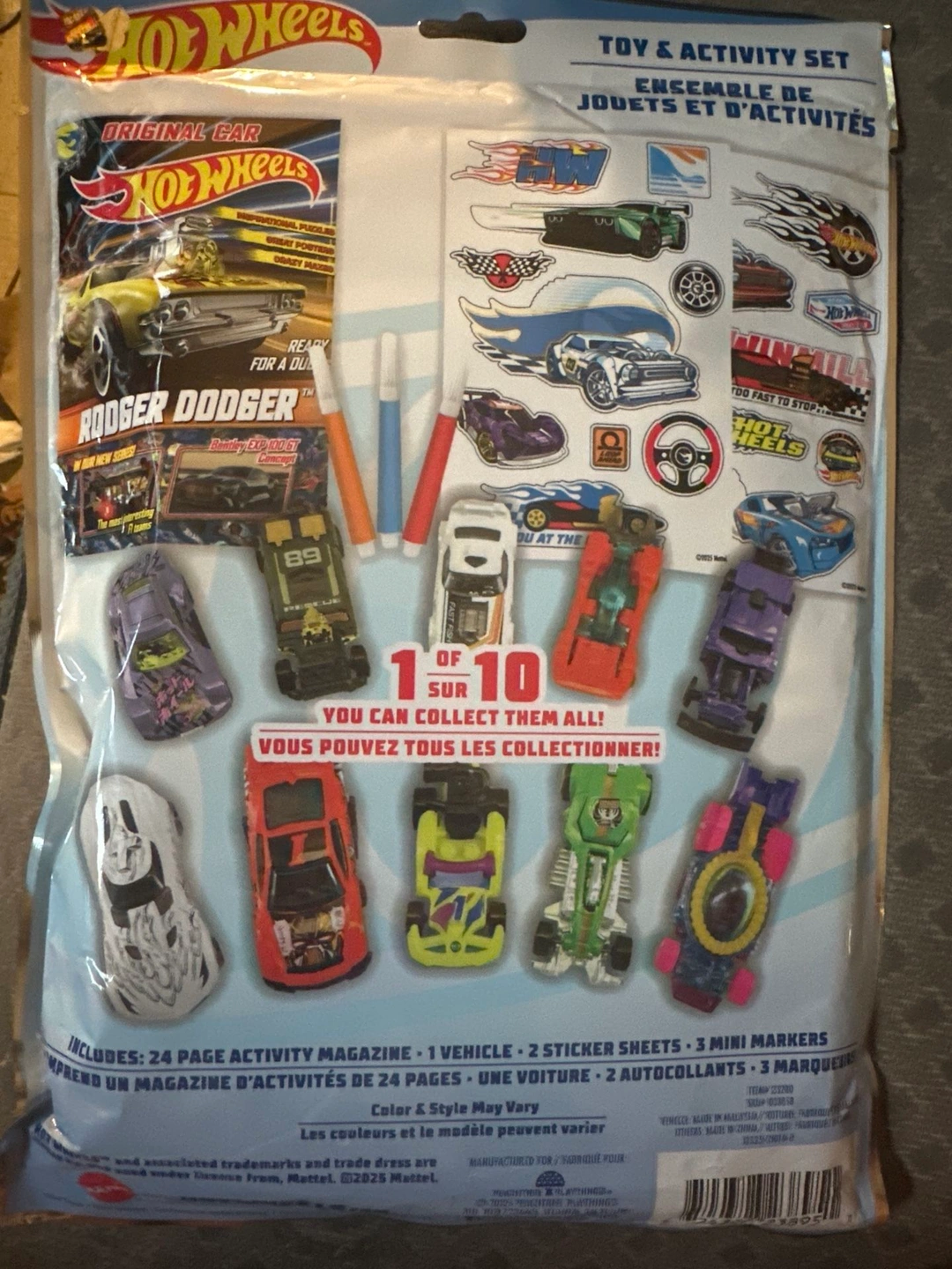I'm selling a brand new Hot Wheels Toy & Activity Set! It includes a 24-page activity magazine, 1 vehicle, 2 sticker sheets, and 3 mini markers. You can collect all 10! Brand: Hot wheels