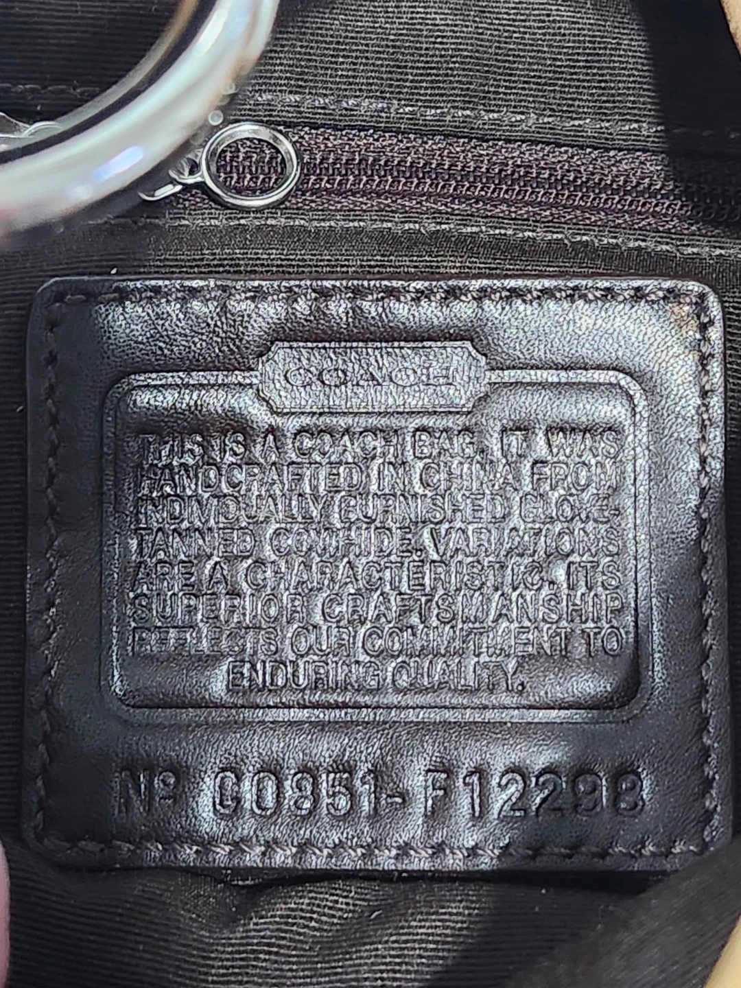 Interior: Typically lined with brown twill or satin and includes a zippered security pocket.