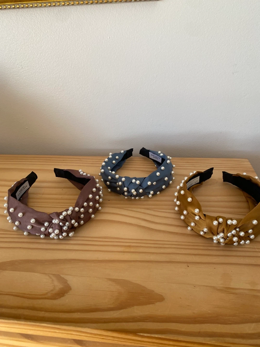 •set of three Duplantis headbands, each adorned with pearls (see pic)