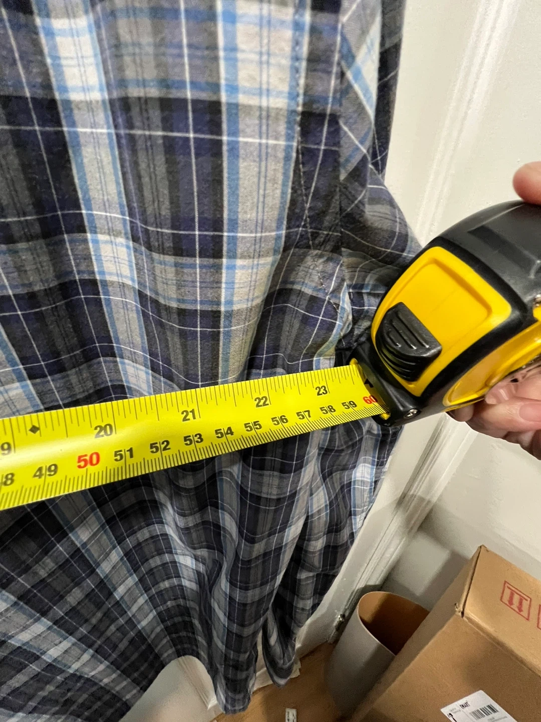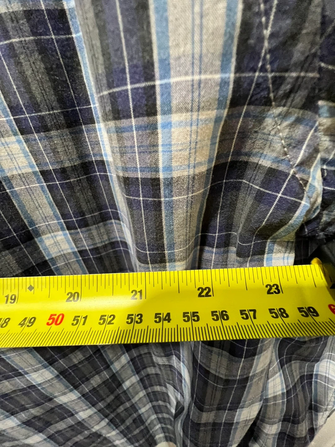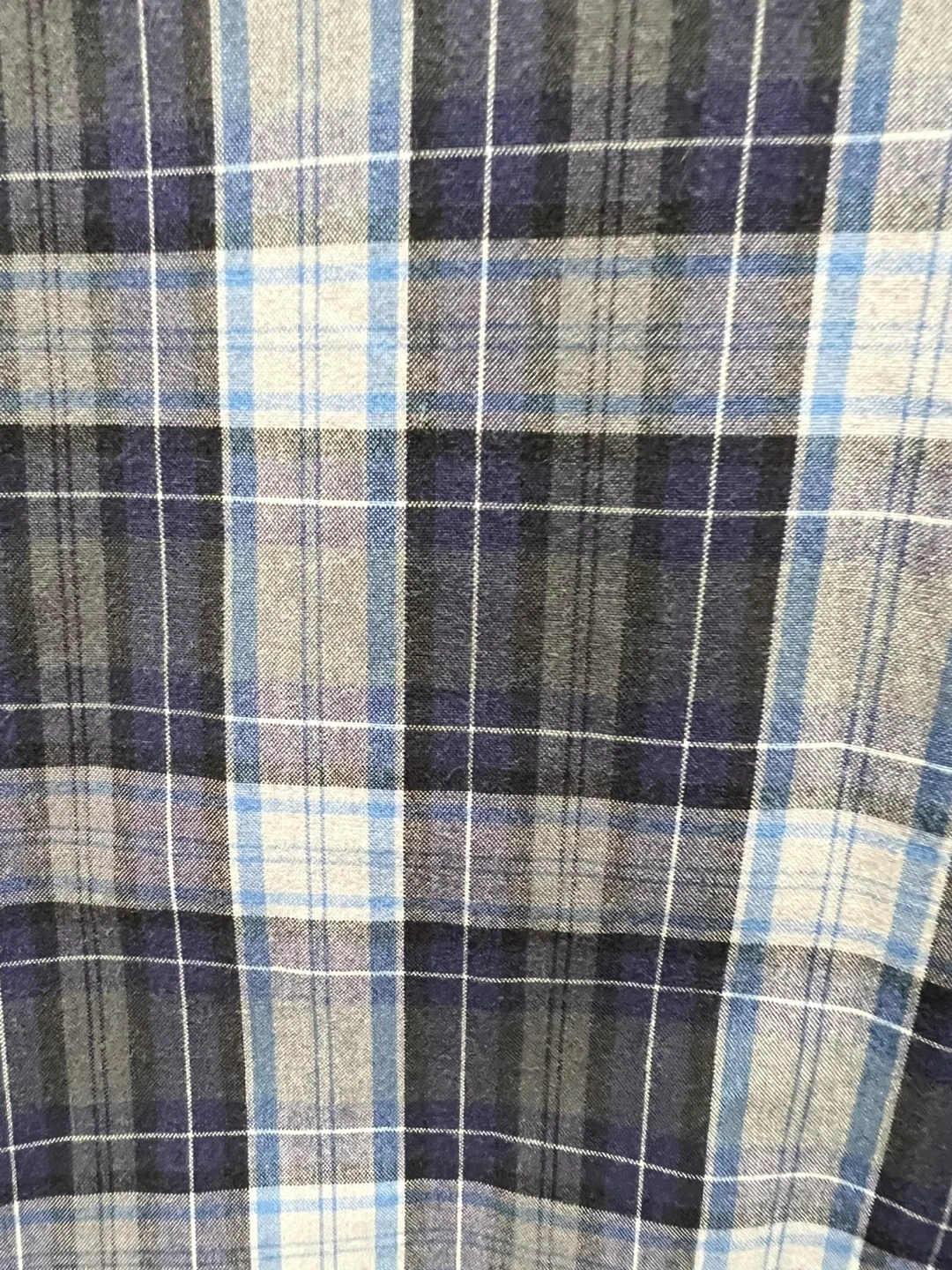 Men's GAP long-sleeve button-up shirt with a blue, grey, and white plaid pattern. It's a size XL. Great for casual wear!