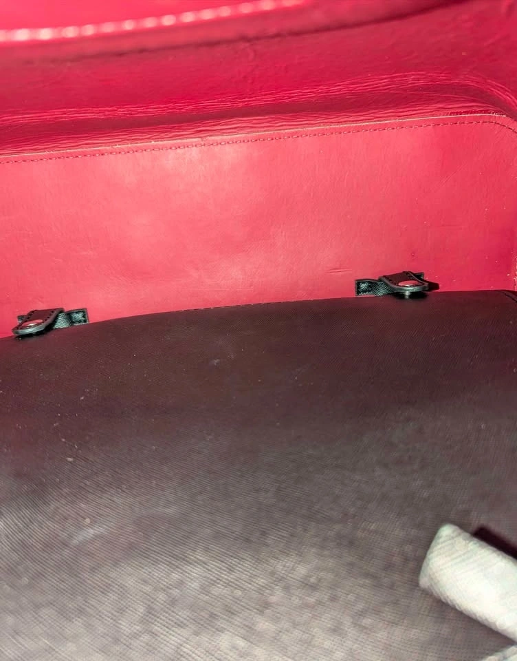 Material: High-quality, textured faux leather (Saffiano style) with a contrasting deep red interior.