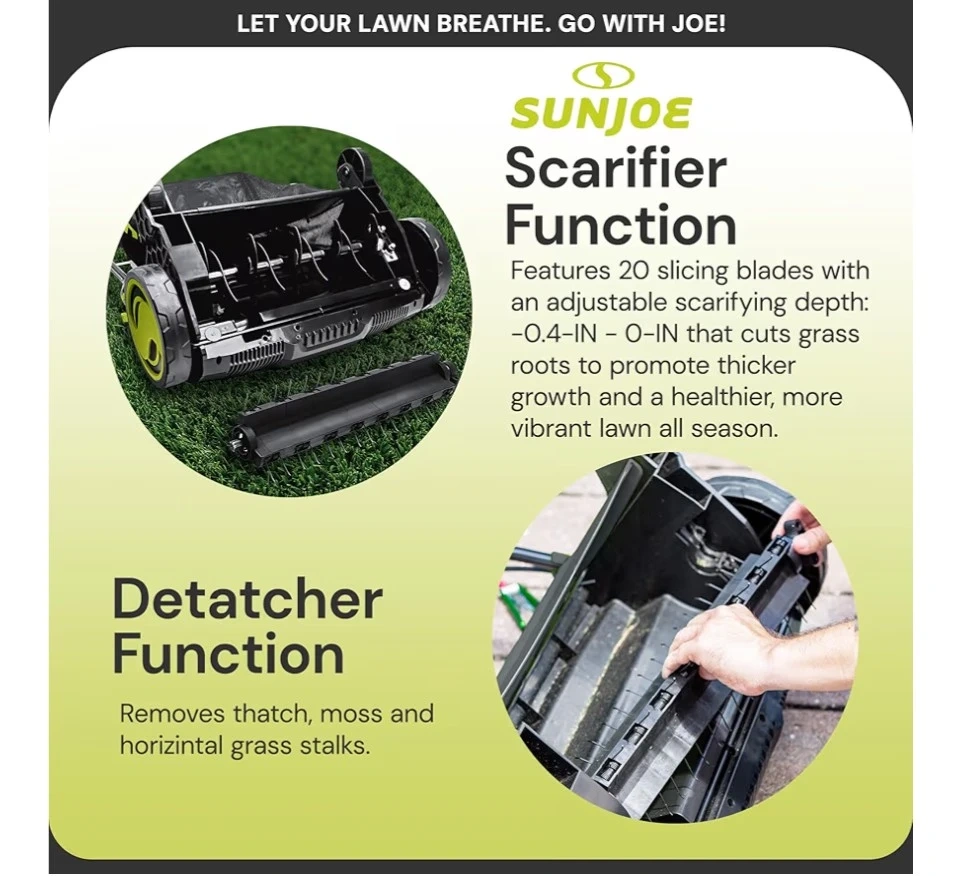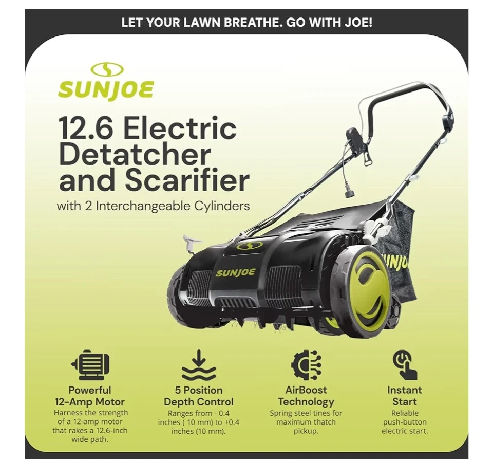 Selling a Brand new! Sun Joe 12.6 Electric Dethatcher and Scarifier. It comes with two interchangeable cylinders and a detachable 8-gallon collection bag.