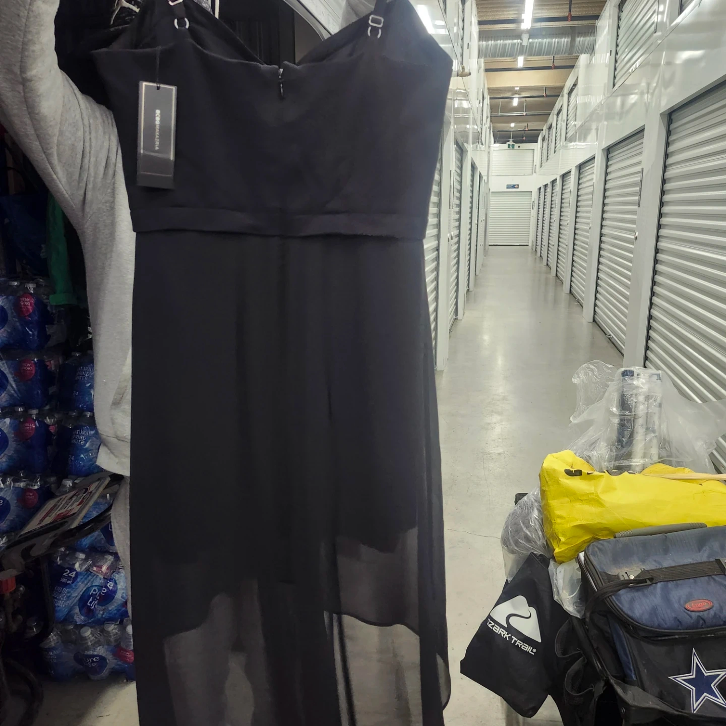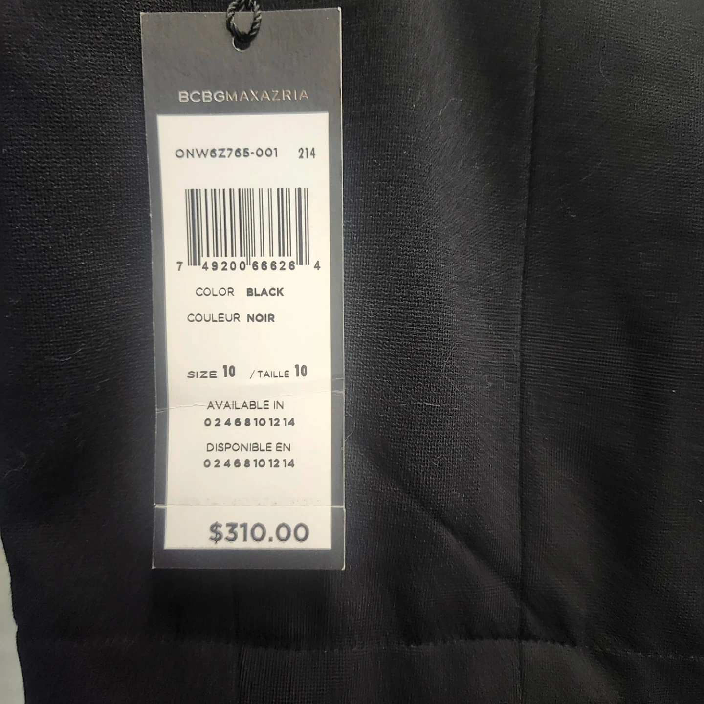 This is a BCBGMAXAZRIA black dress in size 10. It's in great condition and ready for a new owner! The tag shows it was originally $310.00. It's a beautiful dress that would be perfect for a special occasion or a night out