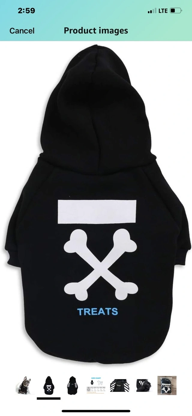 Made of natural cotton, comfortable and breathable, machine washable and dry. There is a hole on the upper back for Leash/Harness. Easy on and off in pullover style. Street style designed hoodie, fashion, vintage, fine in detail, snug fit, medium thick, wind-proof.