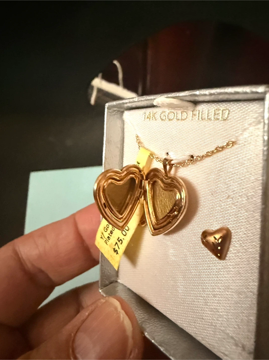14K Gold Filled Heart Locket Necklace and Earrings Set