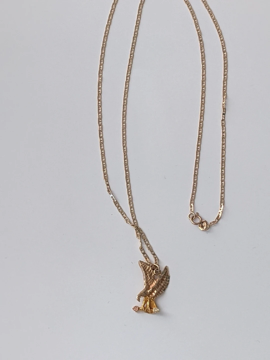 Mens 10k Gold Box Chain 10k Gold Eagle Pendant Stamped