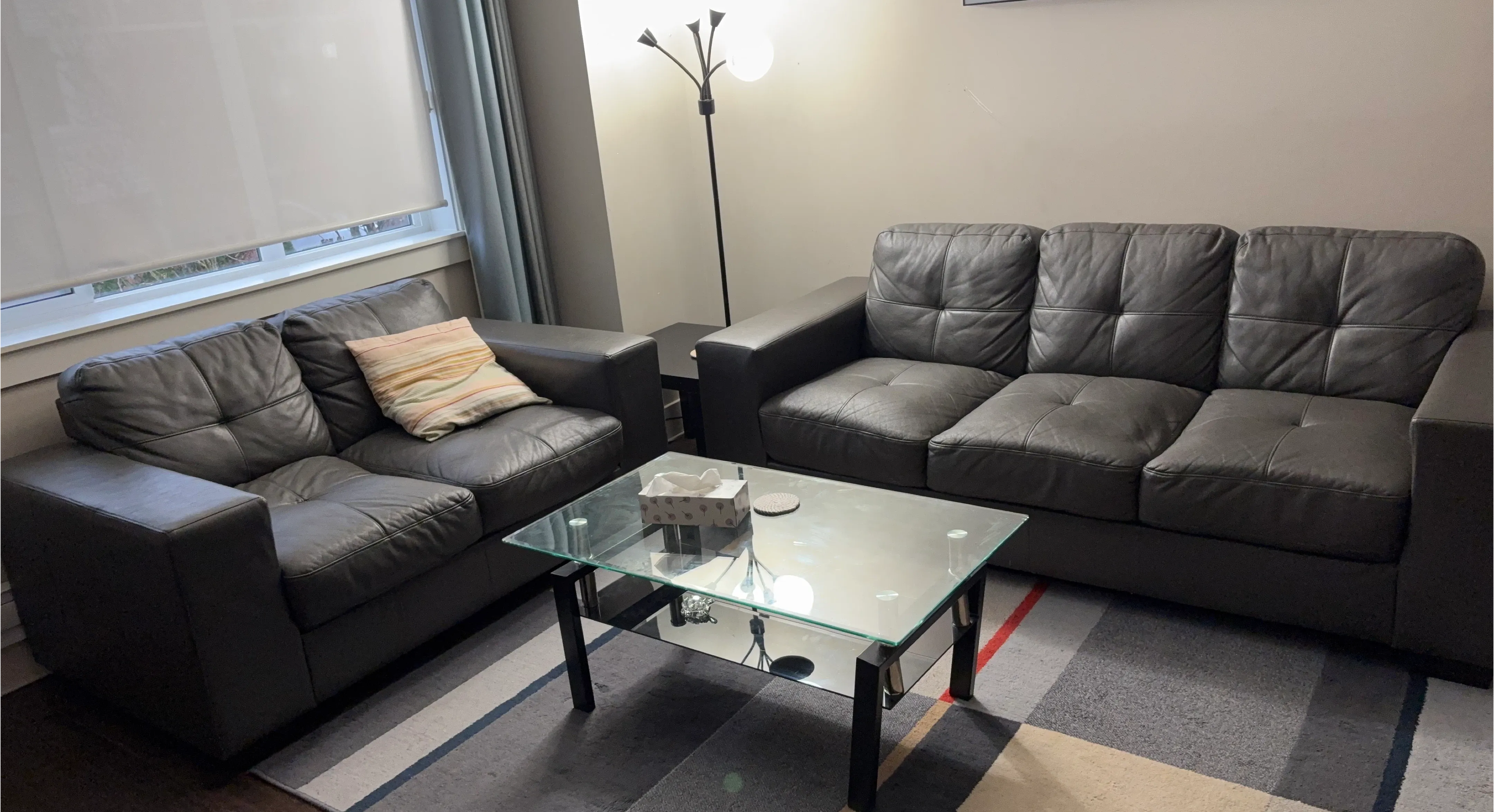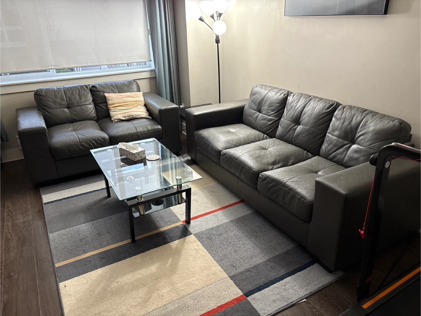 Buy & SellDark Grey Leather Sofa SetDark Grey Leather Sofa Set$300A comfortable two-seater and a three-seater sofa. Upholstered in dark grey leather with stitched detailing. Includes one throw pillow.WHERE TO MEETMaple RidgeView MapSELLERverifiedRishAlbion782 reviews1 chats·1 favorites·29 viewsSEND CHAT TO SELLERHi Rish! I’m interested in your listing.Hi Rish! I’m interested in your listing.Get the Karrot app to chatSign In to chat