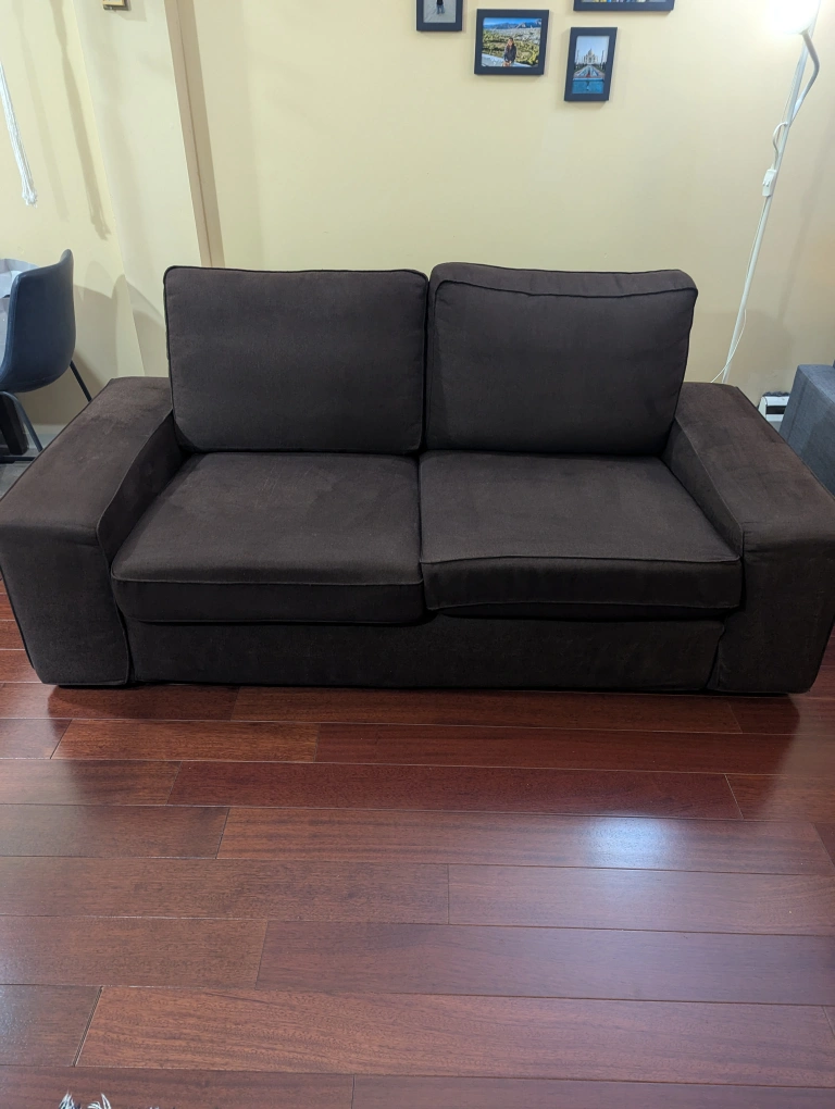 26Selling a comfy brown sofa! It's in great condition and would be perfect for a living room or den. The cushions are nice and plush, and the fabric is in good shape. It's a great piece of furniture to relax on after a long day. The cushion covers are removable and washable, selling to make space in our living room. From pet free and smoke free home. pick up - west end (Nelson- Cardero) 73" x 35" x 18"