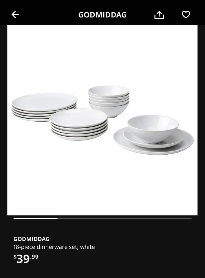 15IKEA 24 PIECE GODMODDAG DINNERWARE SET - Brand New In Box. Never Opened. 18 Piece on IKEA is for $40+tax. Selling this 24 piece for $20 cash. Pickup in Heart Lake East, Brampton.