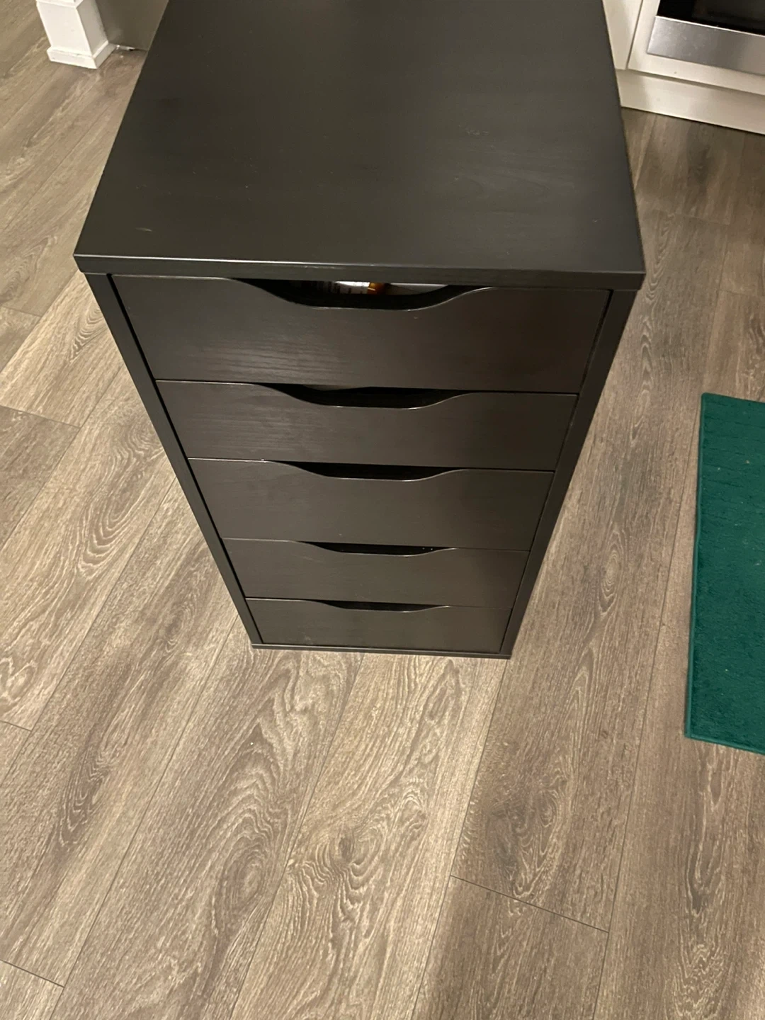 60Selling a dark brown IKEA Alex drawer unit! It's perfect for organizing your space and keeping things tidy. This unit features multiple drawers for ample storage. A great addition to any home office or bedroom