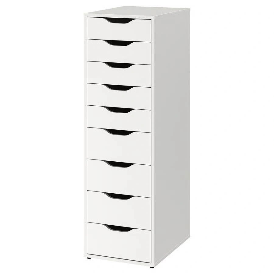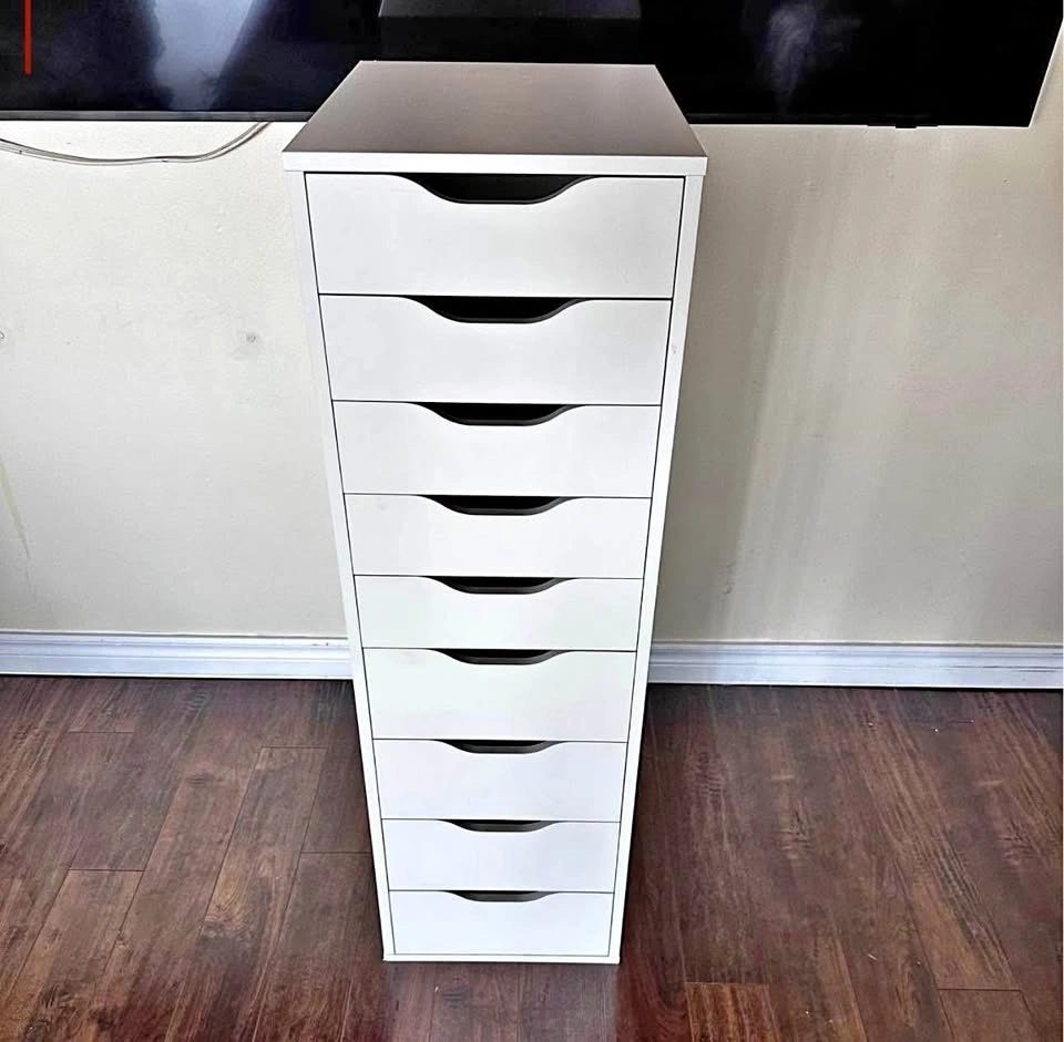 36Fully assembled, 9 drawers, white, storage unit from Ikea (Alex). Very sturdy, lots of space in the drawers & the design prevents drawers from slipping out. Selling because I don’t have use for it. Pick up only. Retails for $159+ tax at Ikea