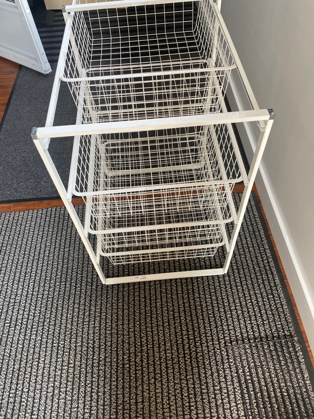 Selling an IKEA Antonius wire basket 4 drawer frame! It's in great shape and ready to help you organize your space. This is a handy storage solution for any room in your home. 27” high by 17.5” wide by 21” deep.