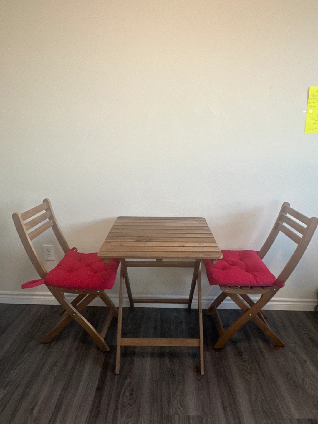 244Selling an IKEA Askholmen bistro set, perfect for a small balcony or patio or even as an indoor coffee table ! Includes a folding table and two folding chairs. The table is 60x62 cm (23 5/8x24 3/8 "). Great for enjoying a morning coffee or evening drink outside Gently used and in great condition Table is priced at 69 cad and the chairs at 45 cad each on IKEA pre tax. This is a great deal.
