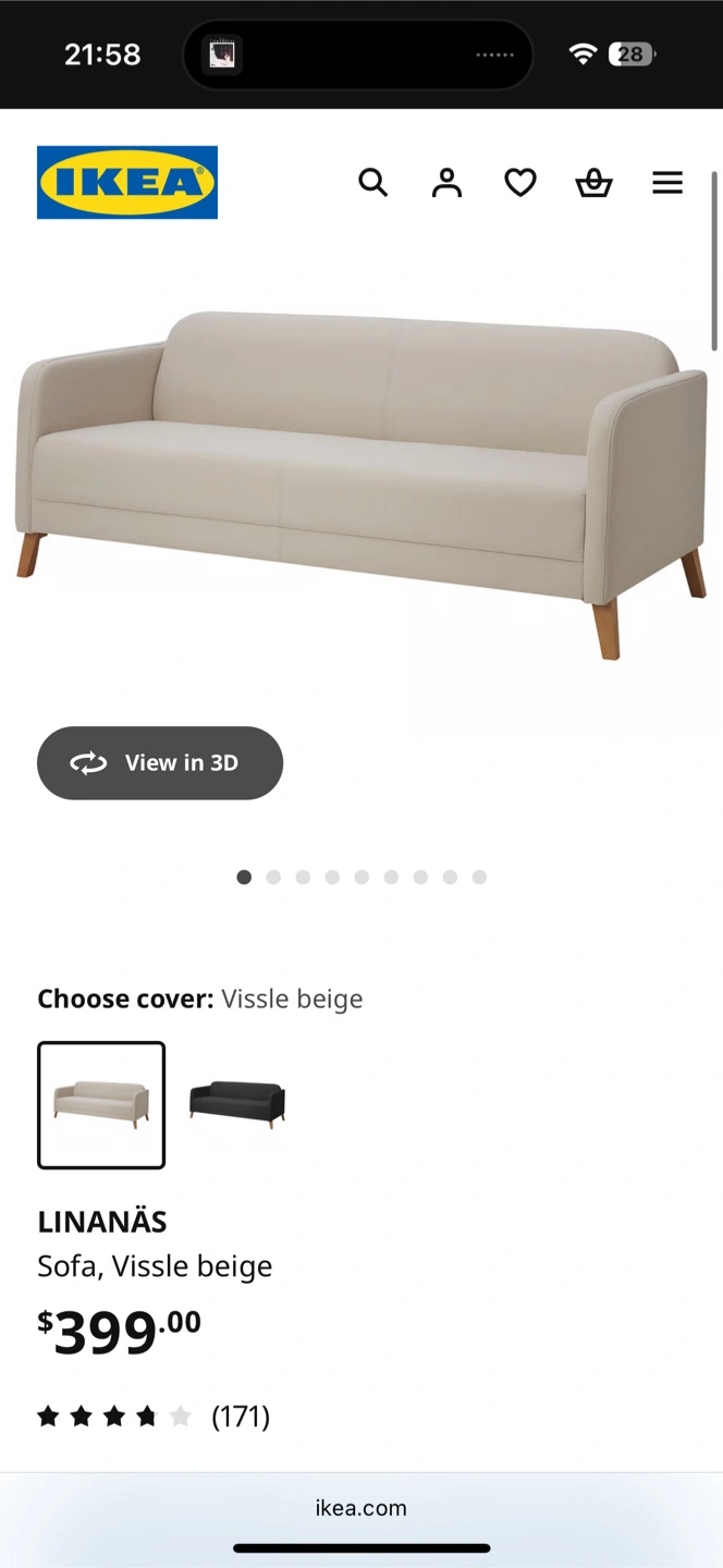31Selling an IKEA LINANÄS sofa in Vissle beige. It's in great condition, bought in December 2024. Originally bought for $399.00